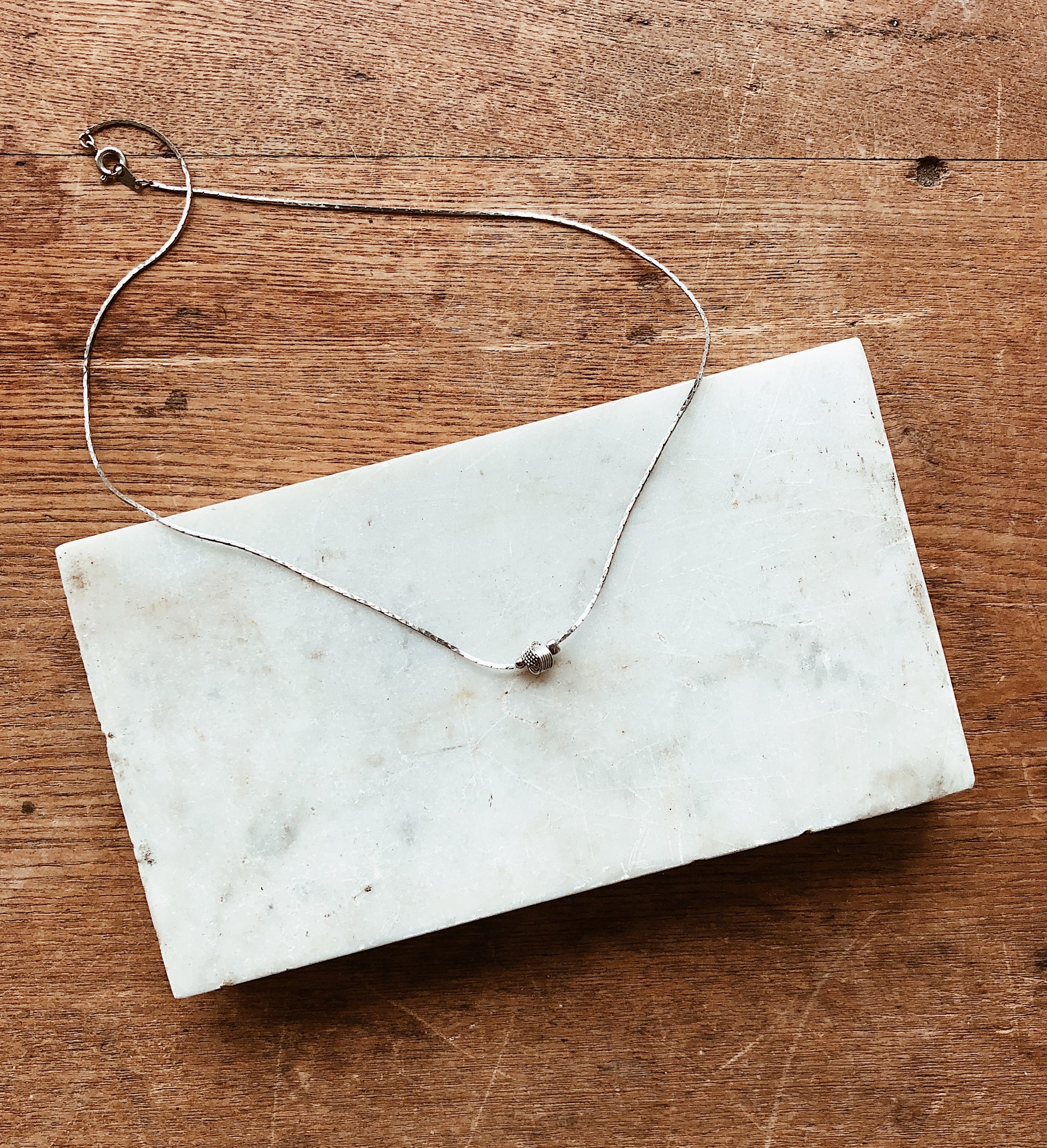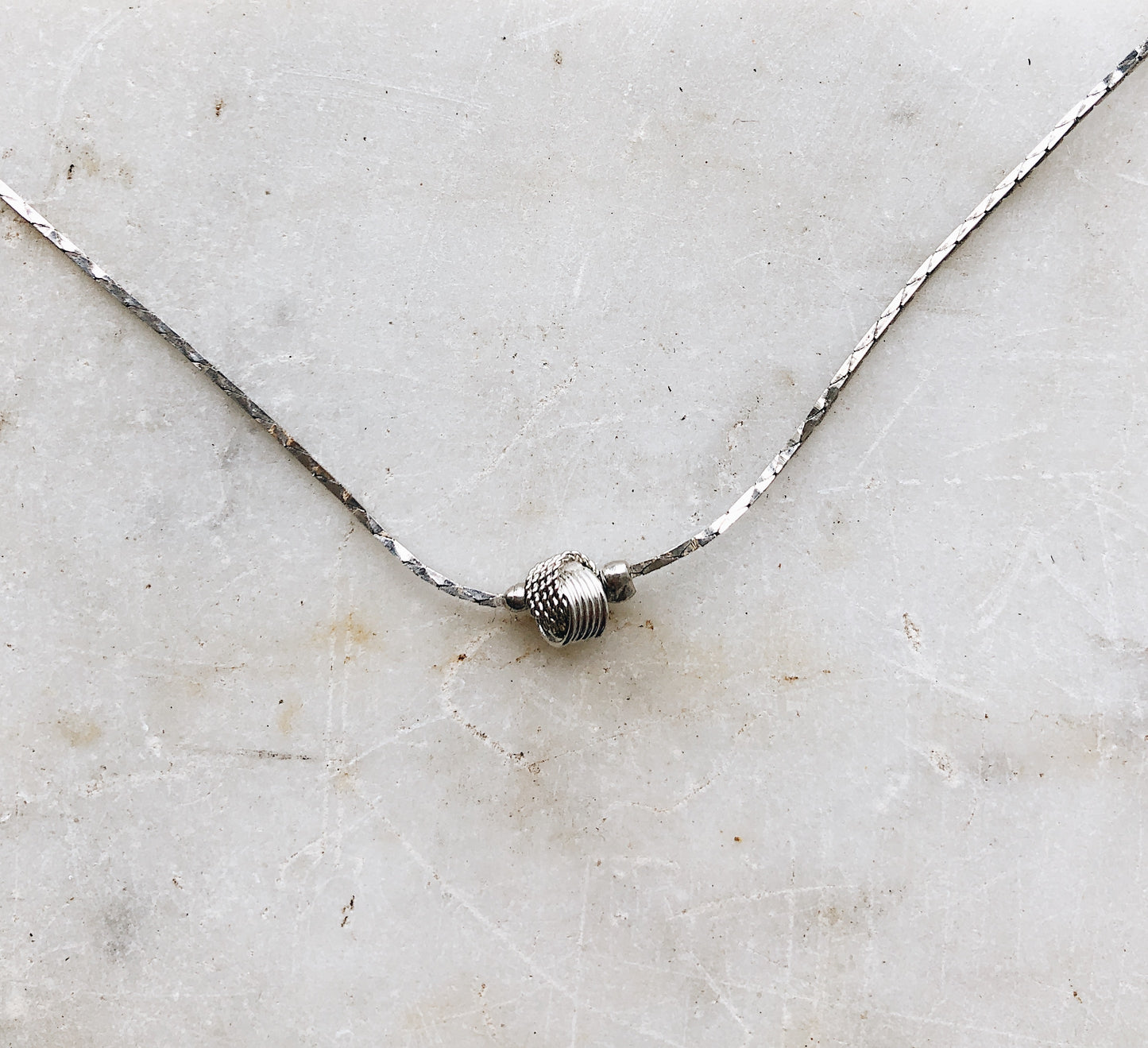 Sweet little love knot charm on a silver box style chain