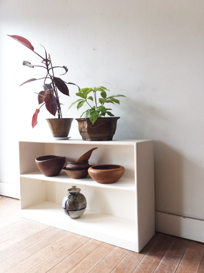 Hard to find these nowadays. Solid wood, painted white. Great long, low design with slightly rounded corners.
