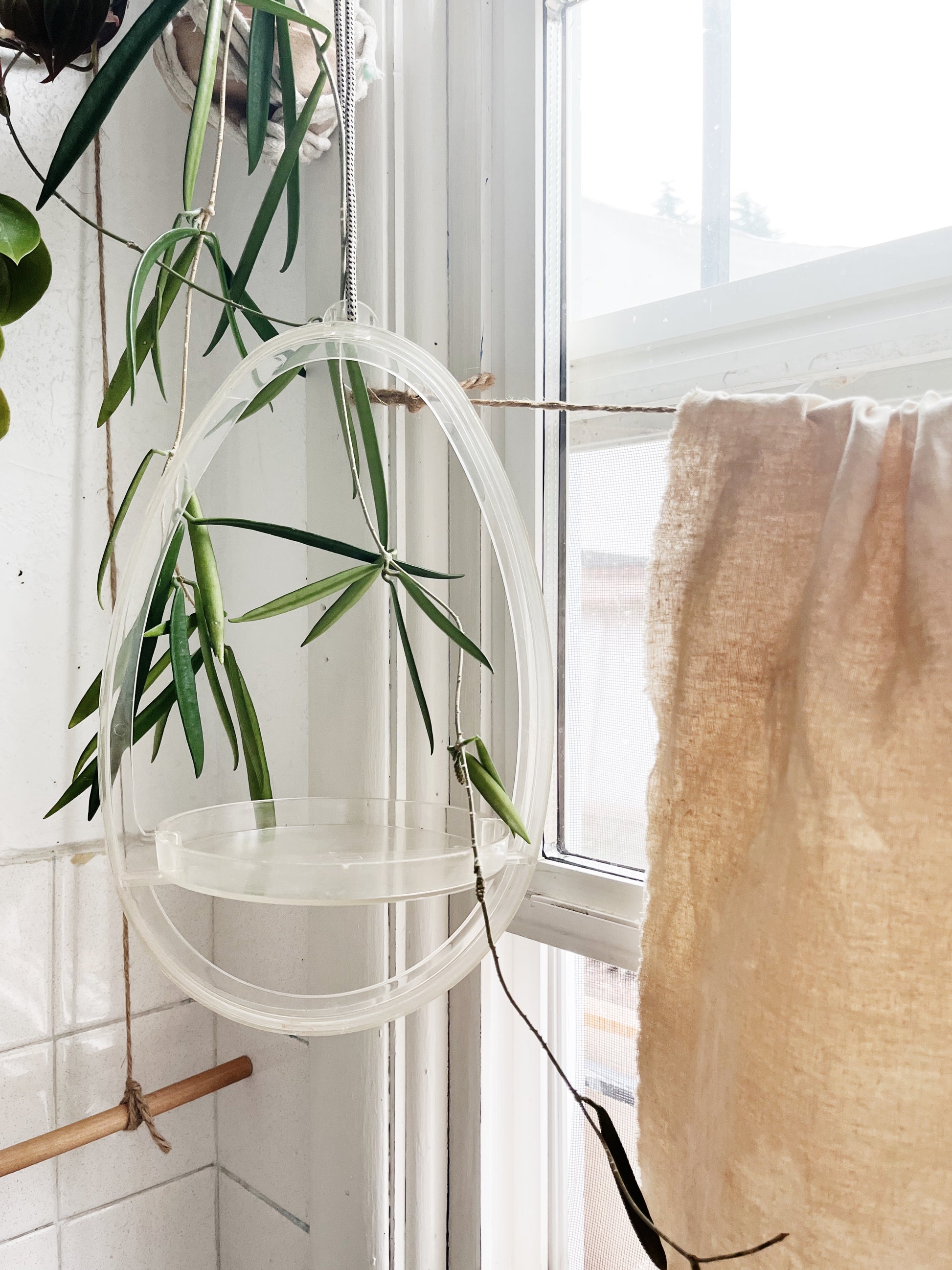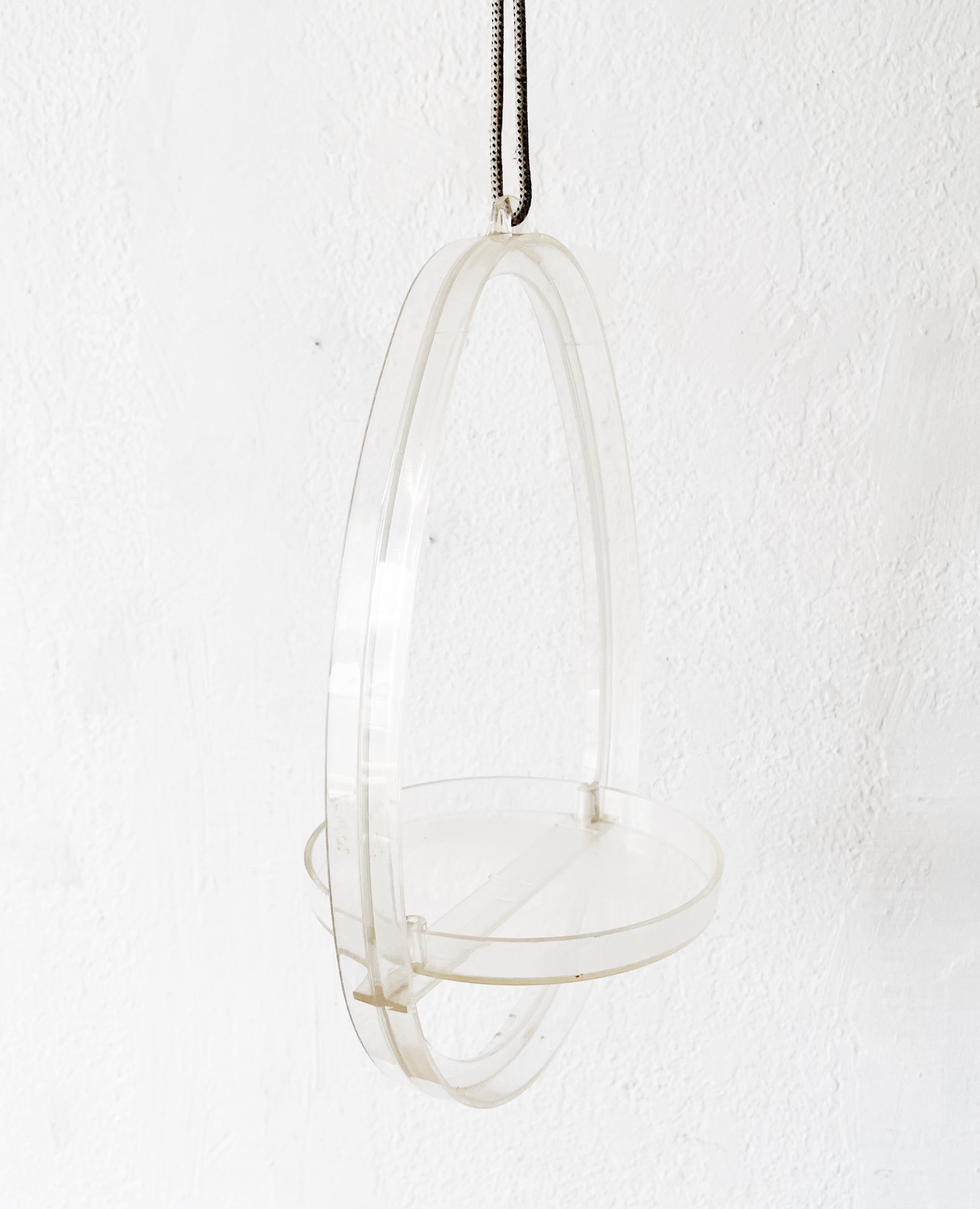 Vintage clear plastic planter in a teardrop shape. Tray removes for cleaning. In good condition with some dulling to the finish
