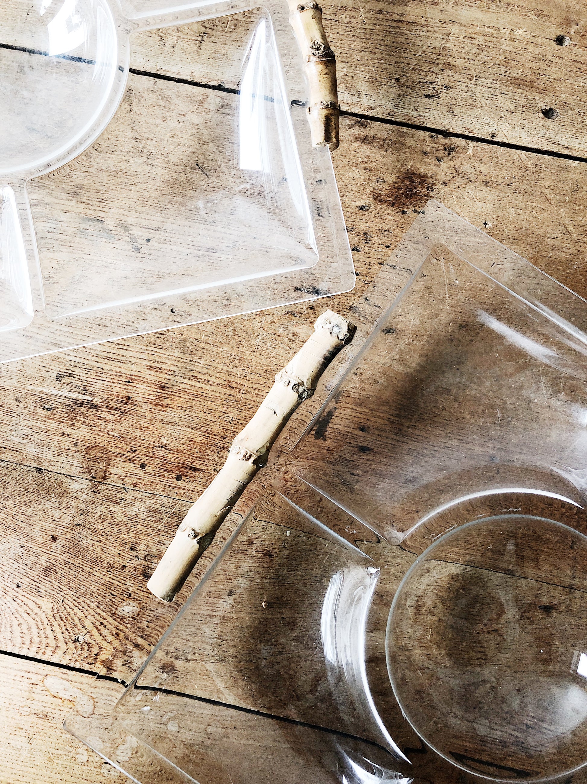 Rad vintage lucite tray with bamboo handles. Divided areas for snacks or sides