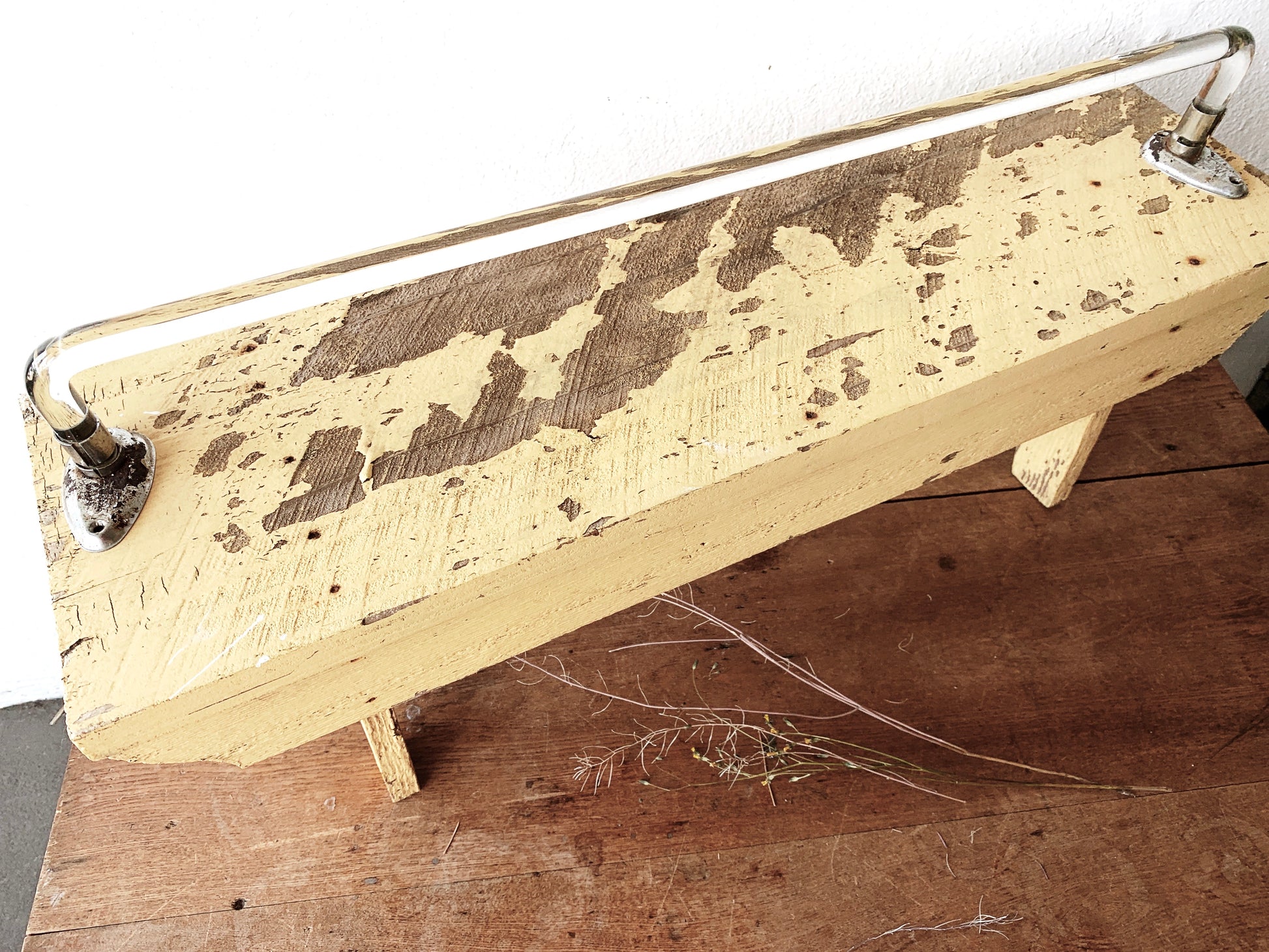 Fantastic and hard to find vintage lucite towel bar. Nice and long at 24”. Nice rusty patina to the metal end caps.