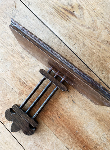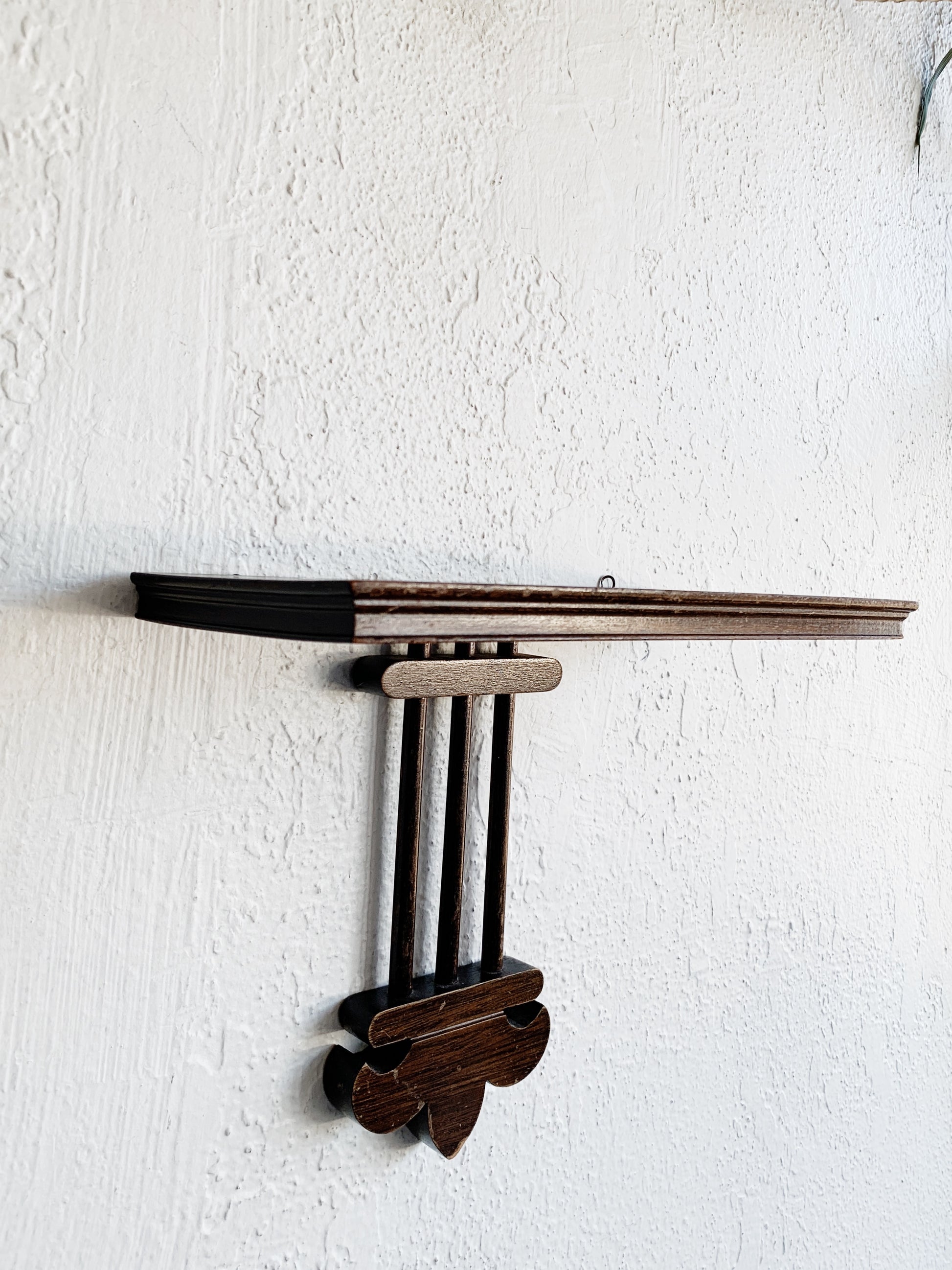 Wonderful mahogany shelf with fleur de lis nd carved ledge detail. Lovely! Solid mahogany. Has two little brass hangers on back. Makes a perfect plant perch or bathroom shelf.