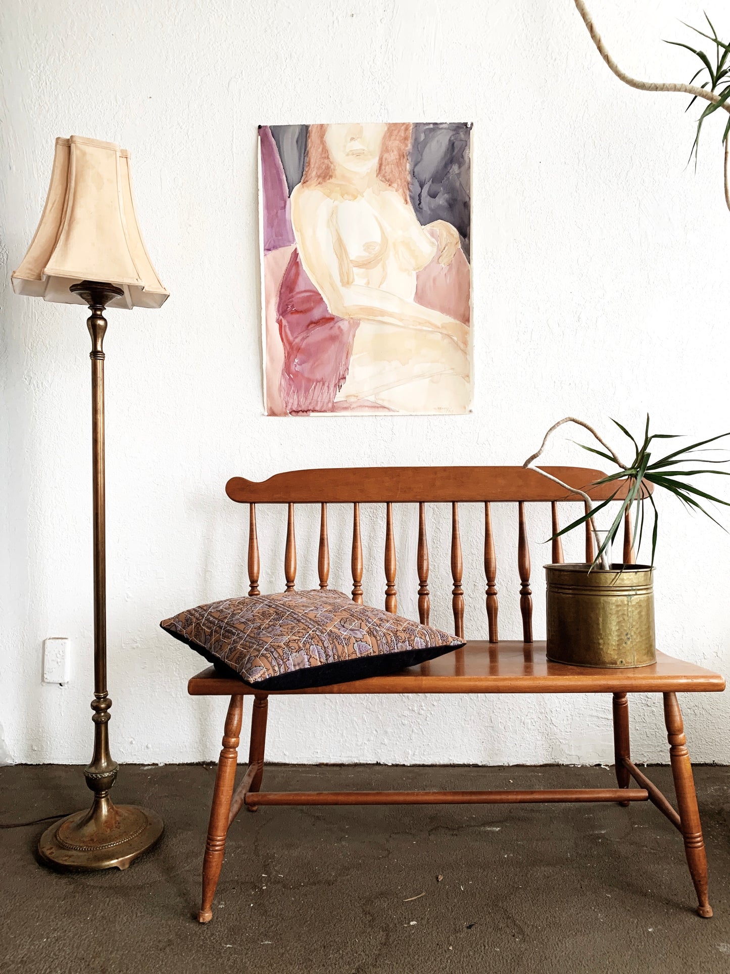 Wonderful vintage maple bench. Armless style makes it feel a bit more modern. Great looking, sturdy and in excellent condition.