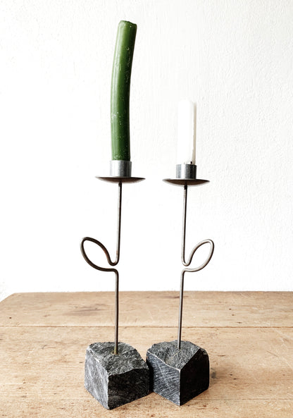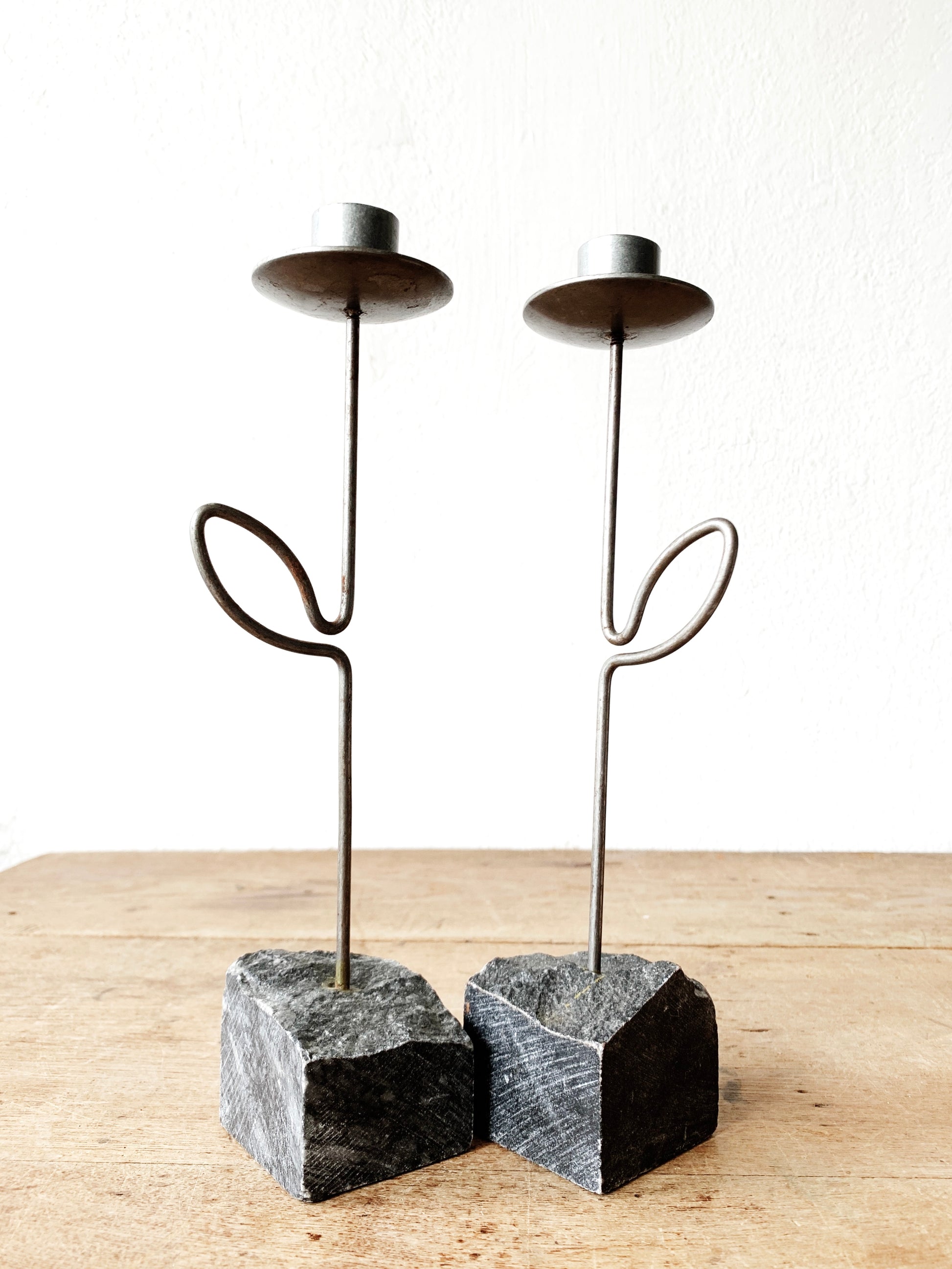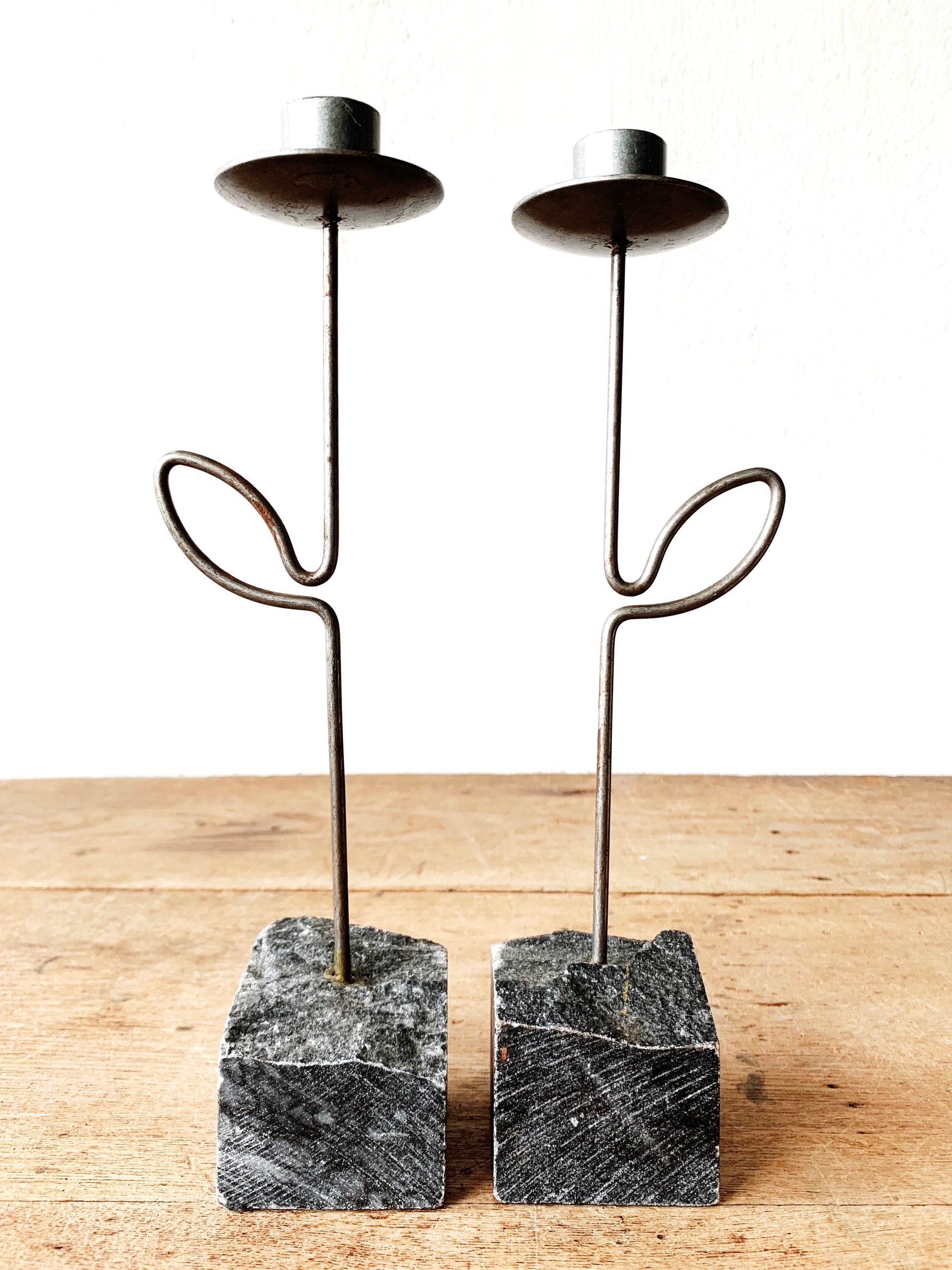 fun vintage candle holders made of stone and iron. They hold standard tapers. Price is for the pair