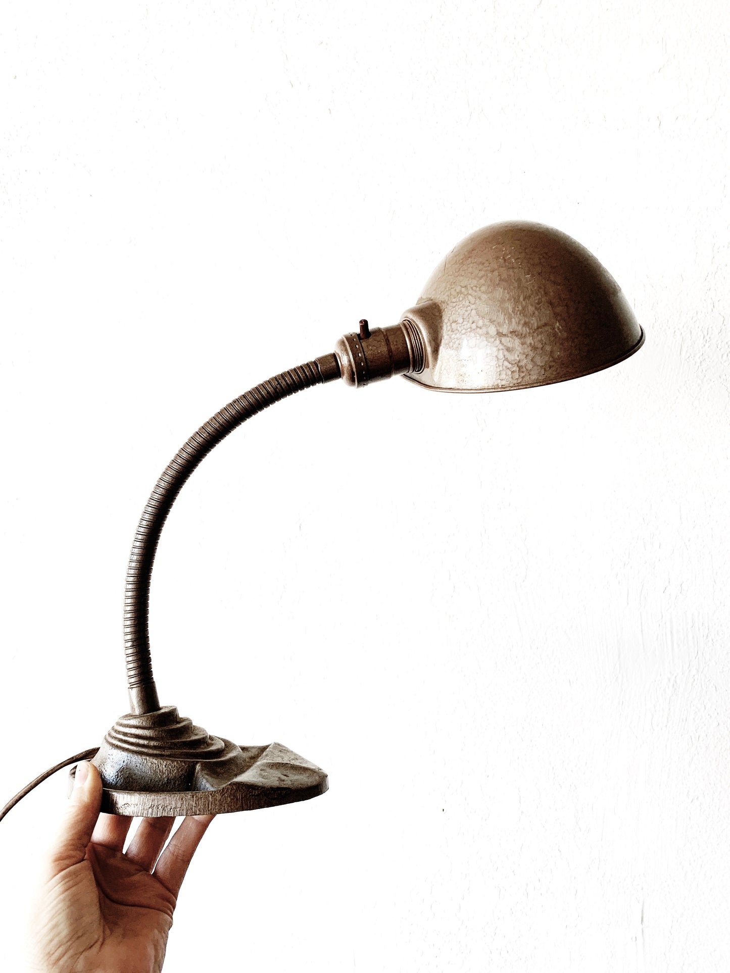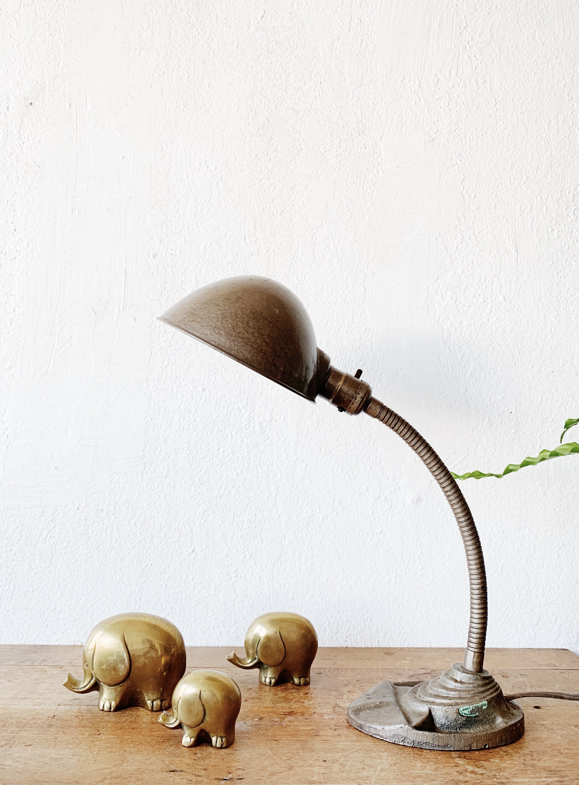 Nice old gooseneck lamp by Underwriters Lab. Metal with bronze finish. Wonderful decorative base.