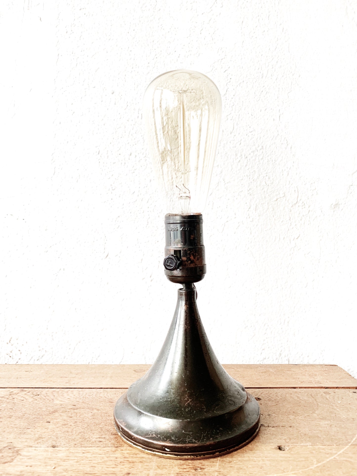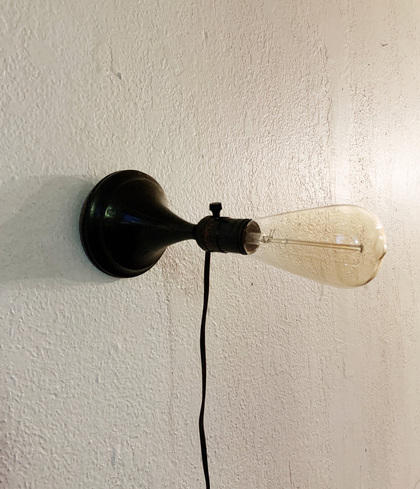 Awesome 1940’s arts and crafts Bussman adjustable lamp. Use as a table lamp or sconce. Metal with very faint, easy to miss floral motif engraving on the base.