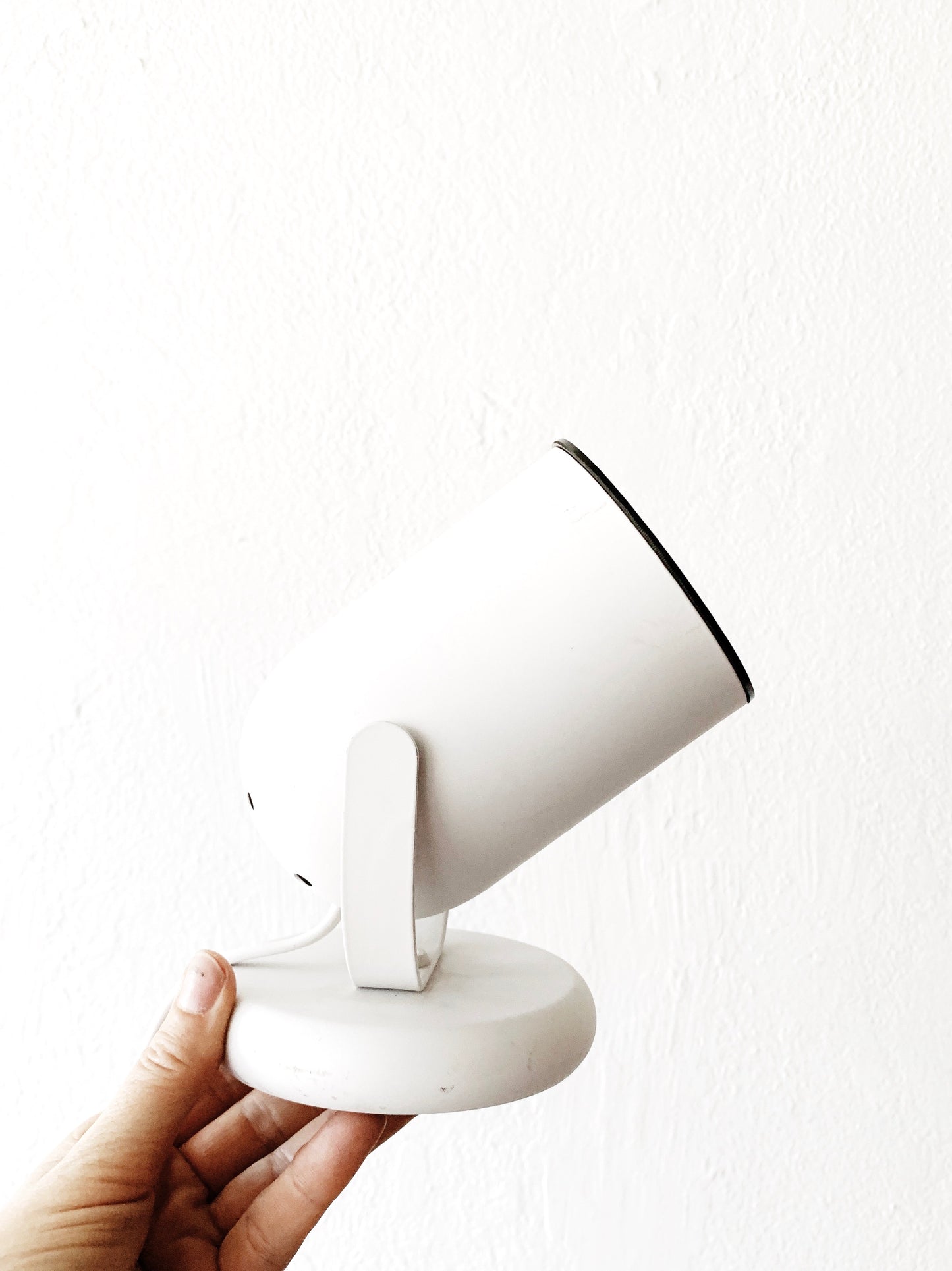 Nice vintage metal spotlight with switch cord. Takes a standard bulb. 5”