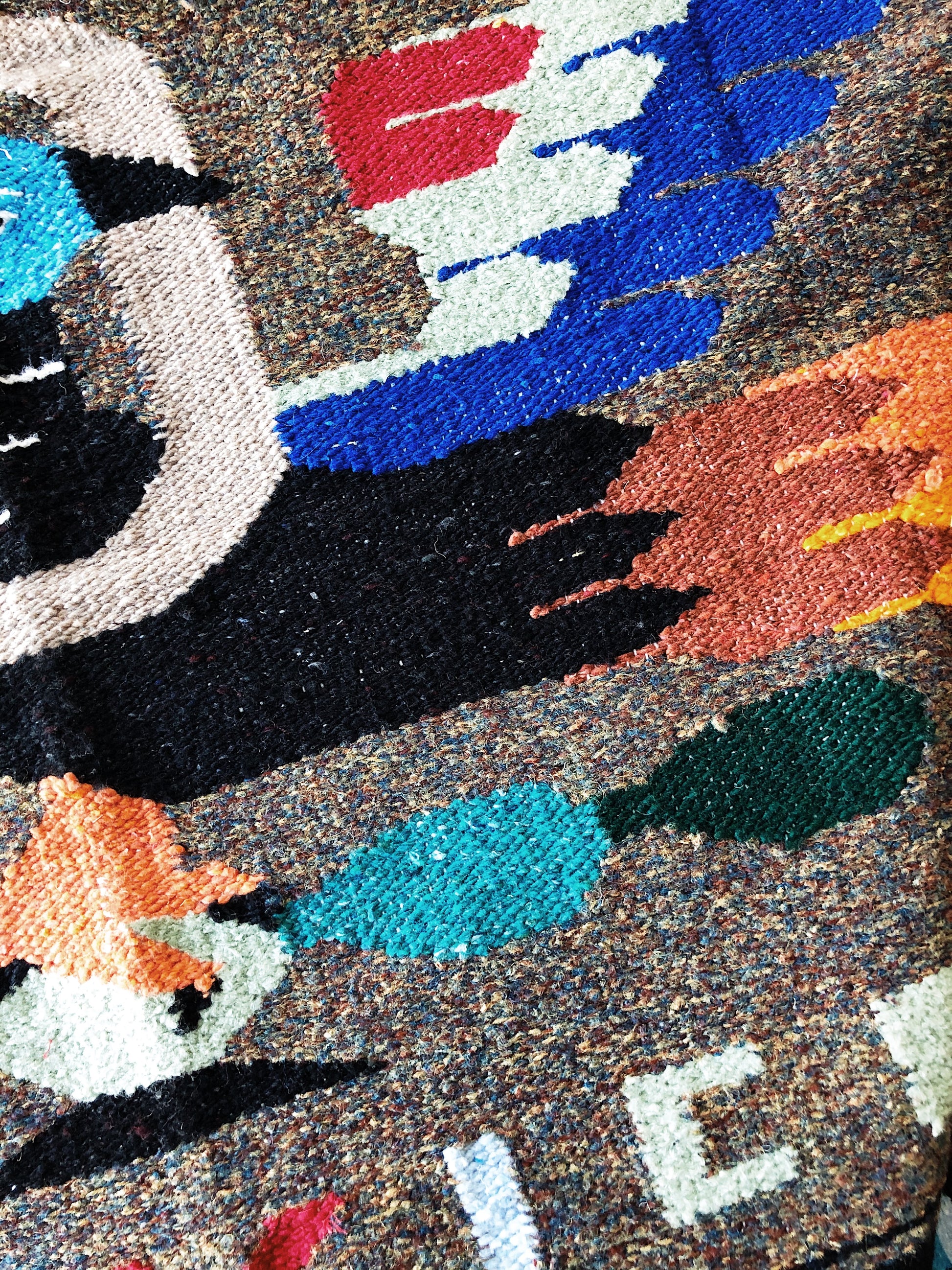 Fab vintage blanket from Mexico. Iconic snake and eagle graphic. Colors on this one are really good. Blend of cotton and wool and man made fibers.