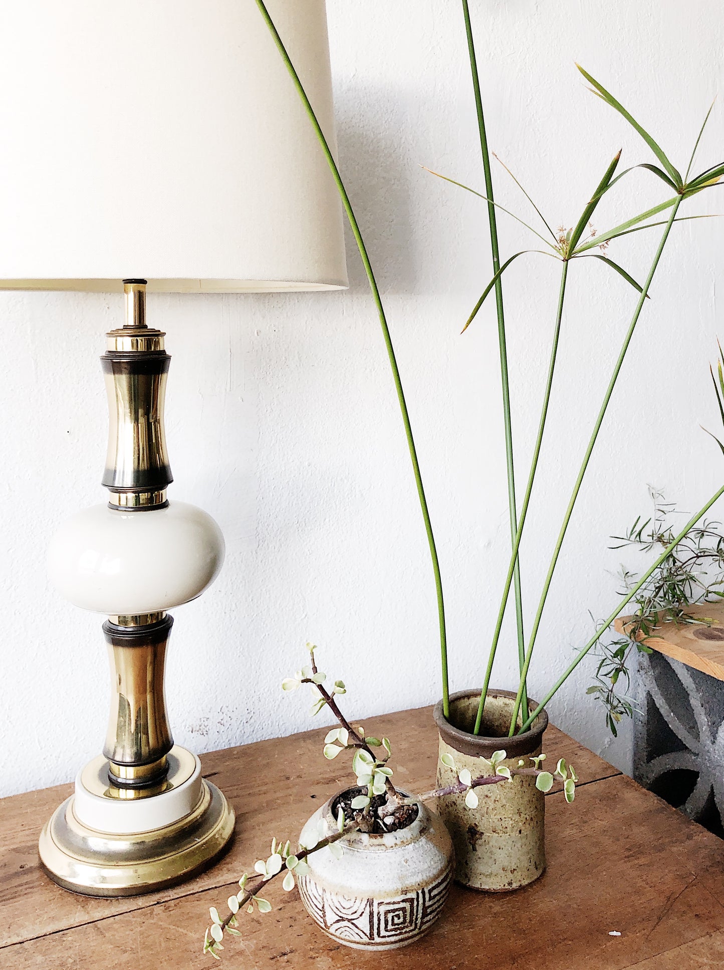 Vintage Mid Century Brass and Enamel Lamp