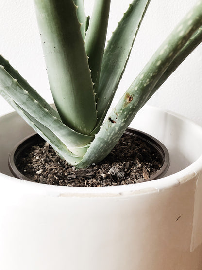 A nice modern lined vintage ceramic pot in pure white. Fantastic lines and great size! Glaze loss around rim was during production and not chipped