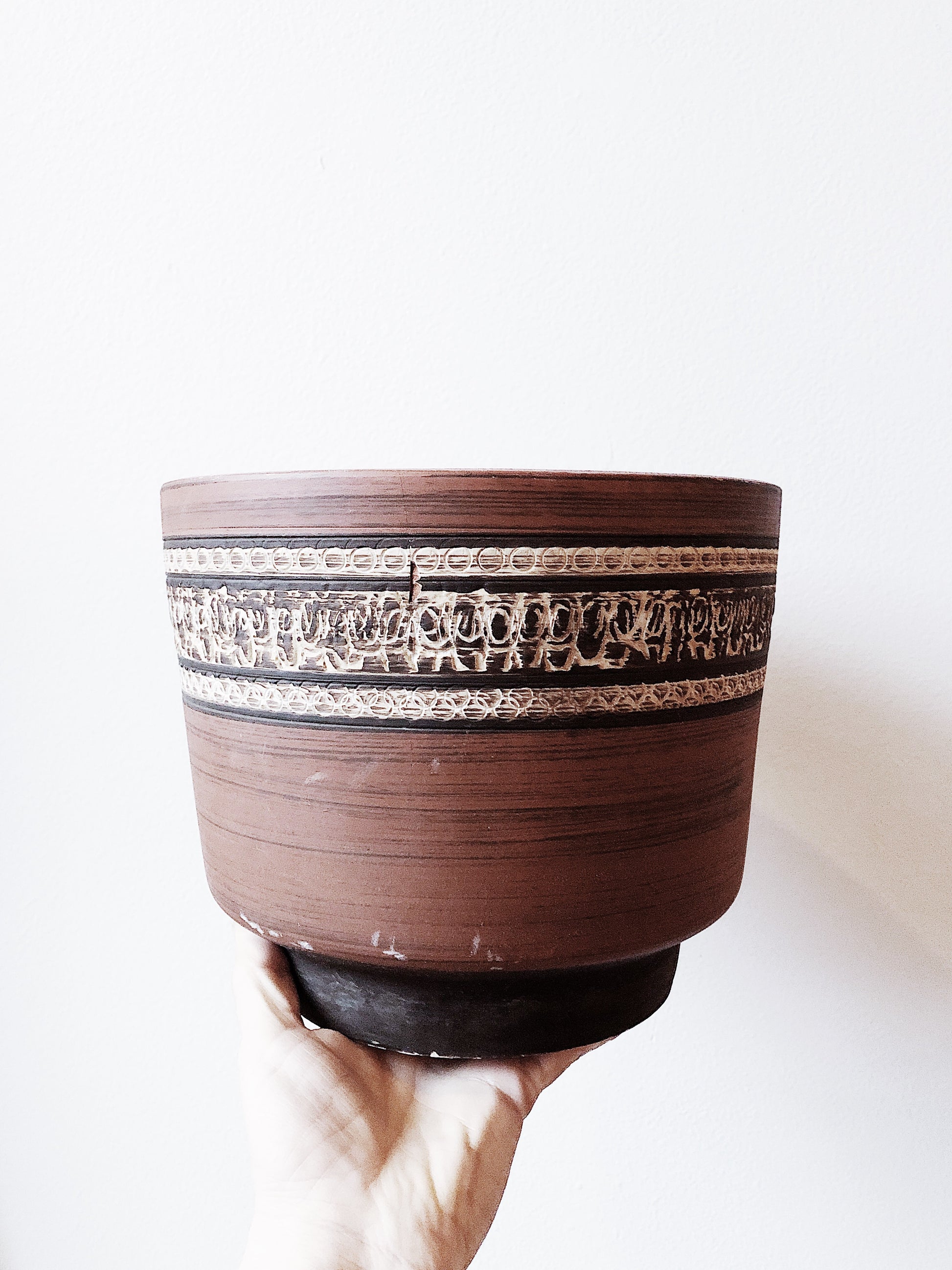 A nicely sized clay pot from the mid century. One small imperfection as shown. Does not penetrate the interior and doesnt detract. Holes for drainage