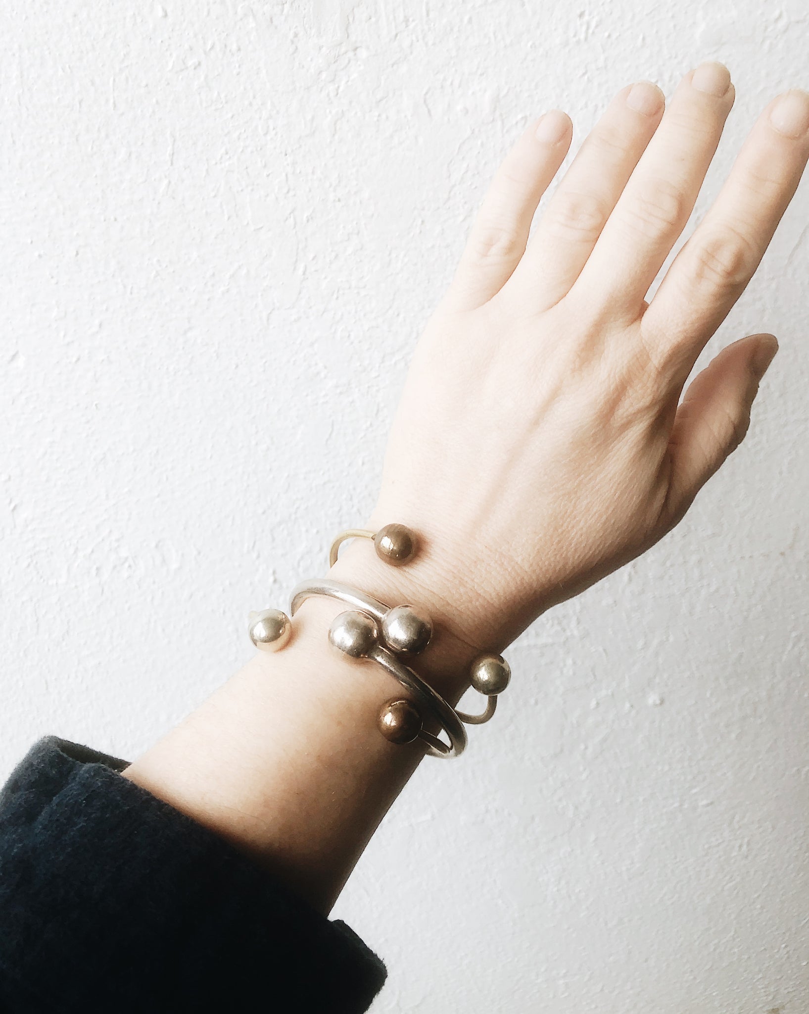 Simple and modern bracelet with double ball design. Nice Mexican 925 silver markings. Beautiful sheen