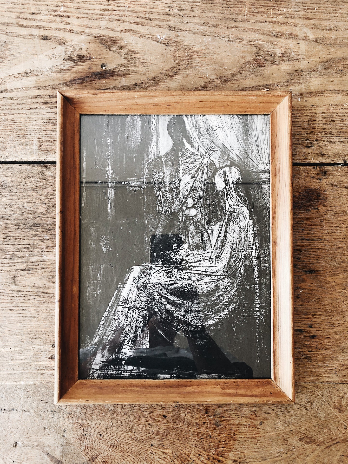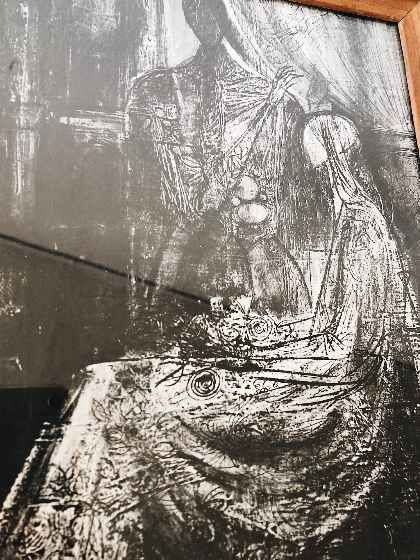 One in a large collection of vintage lithographs. From the mid century, these lithos, all together, would make an amazing art wall. All are framed in vintage wood or metal by a professional
