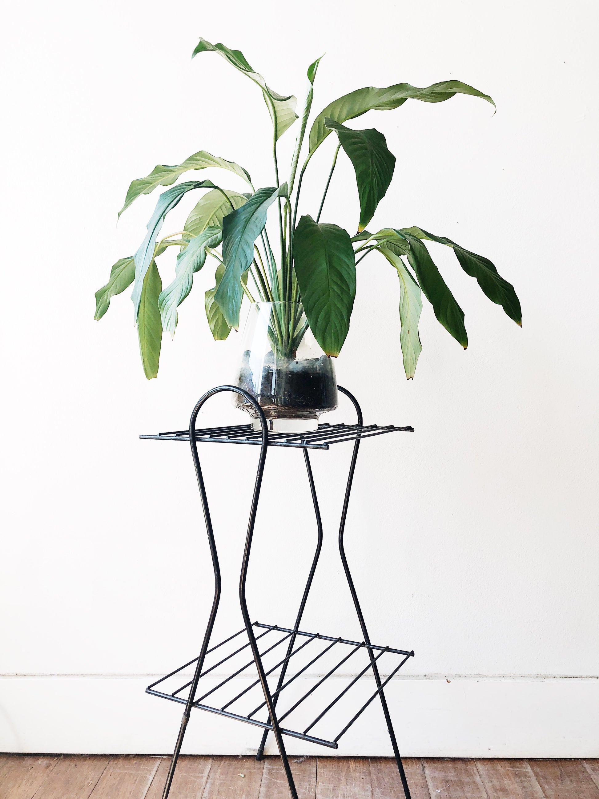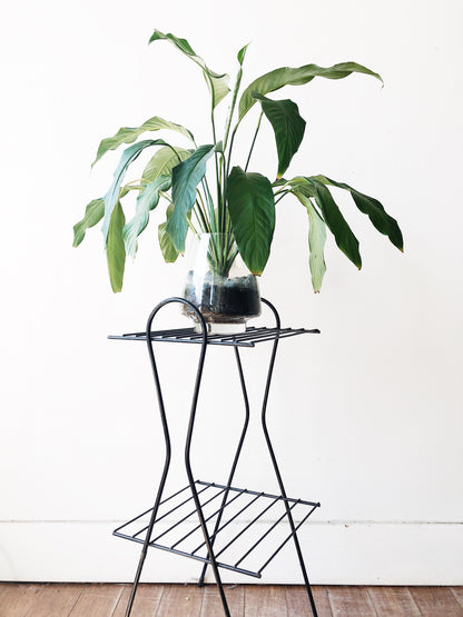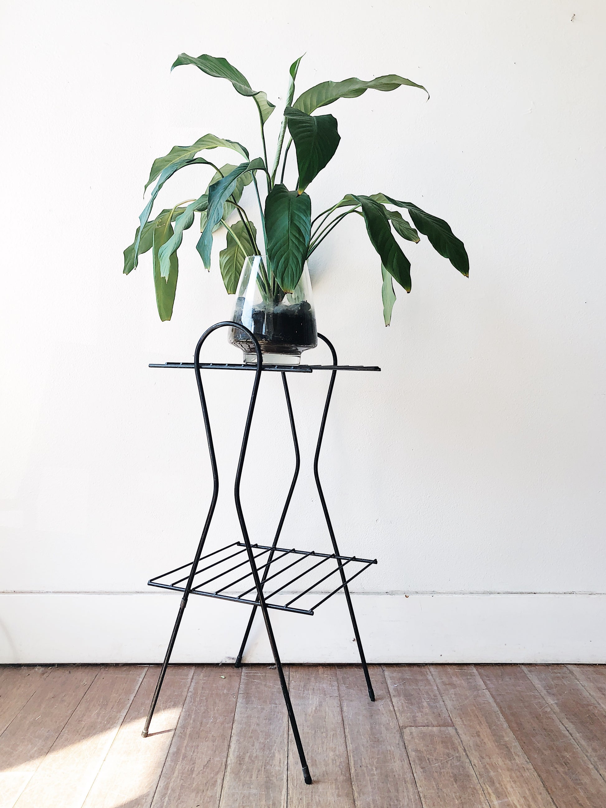 Vintage black metal plant stand with two shelves. Nice hairpin style