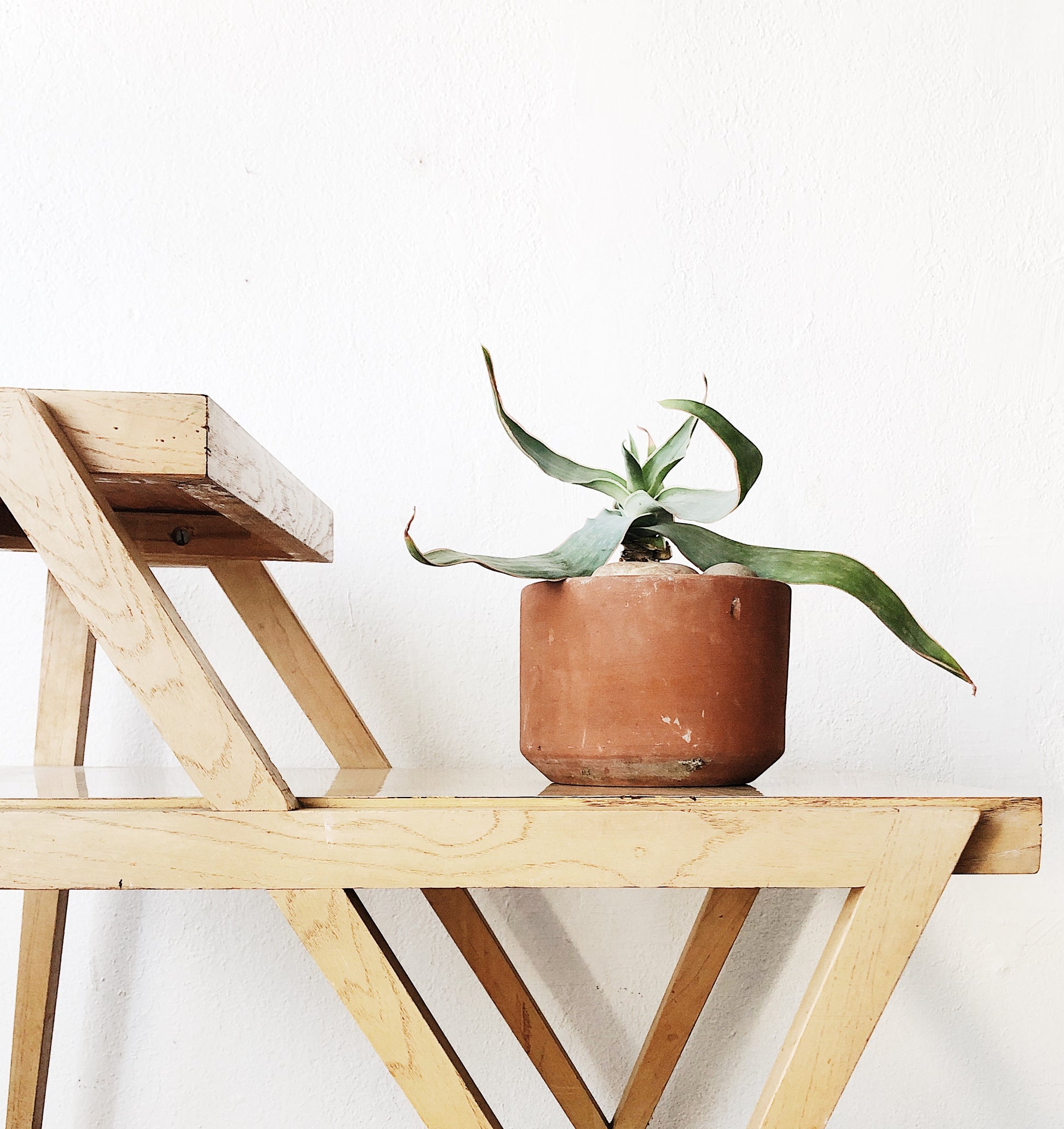 Fantastic shape to this mid century table. Blond wood frame with laminate top. Makes this ideal for plants!