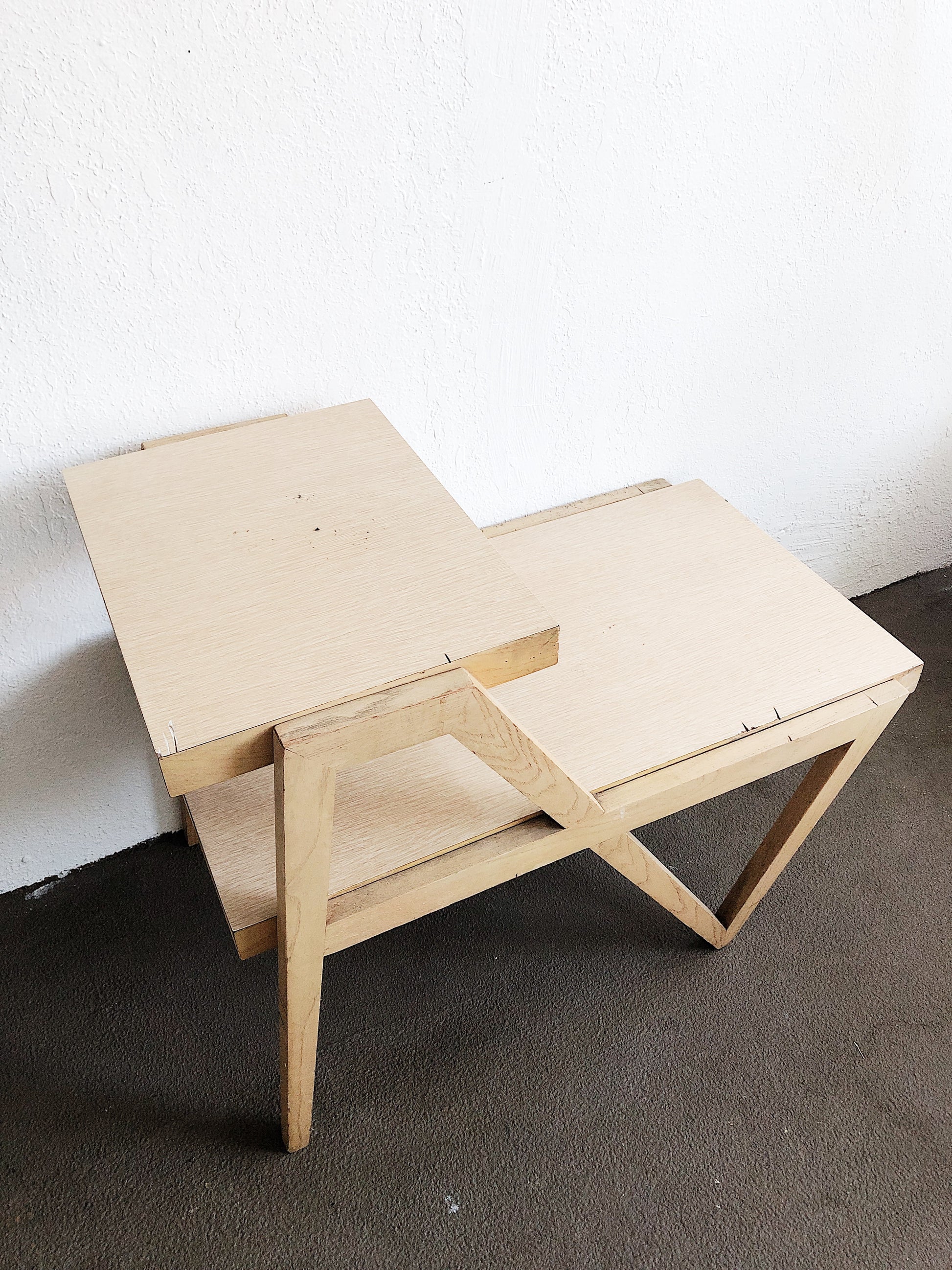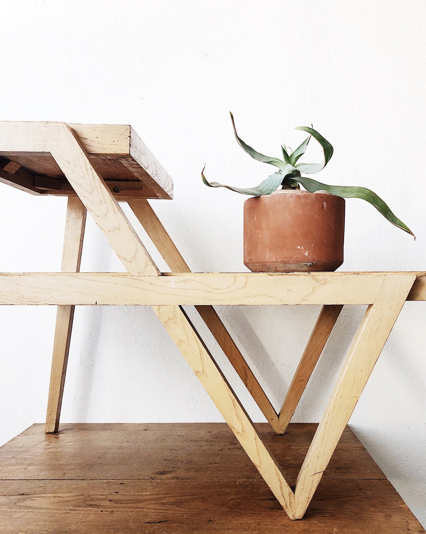 Condition: a bit of wear, but again, great for use as a plant table or media stand. Wear doesn’t detract from the fab shape
