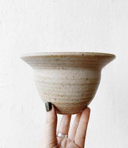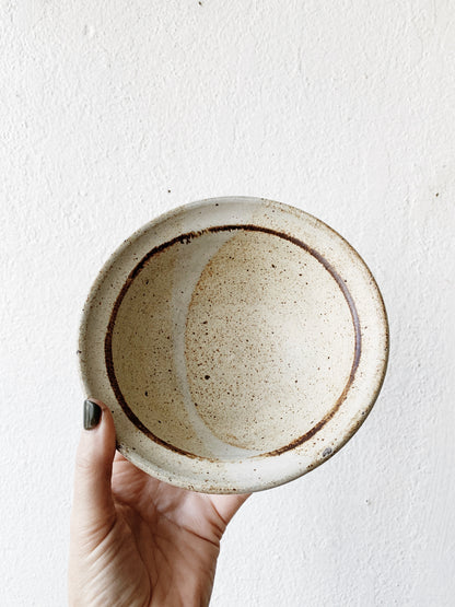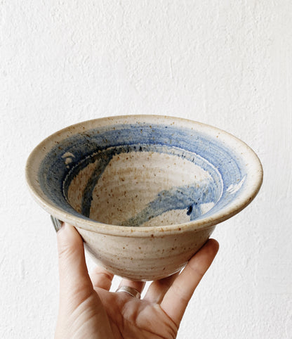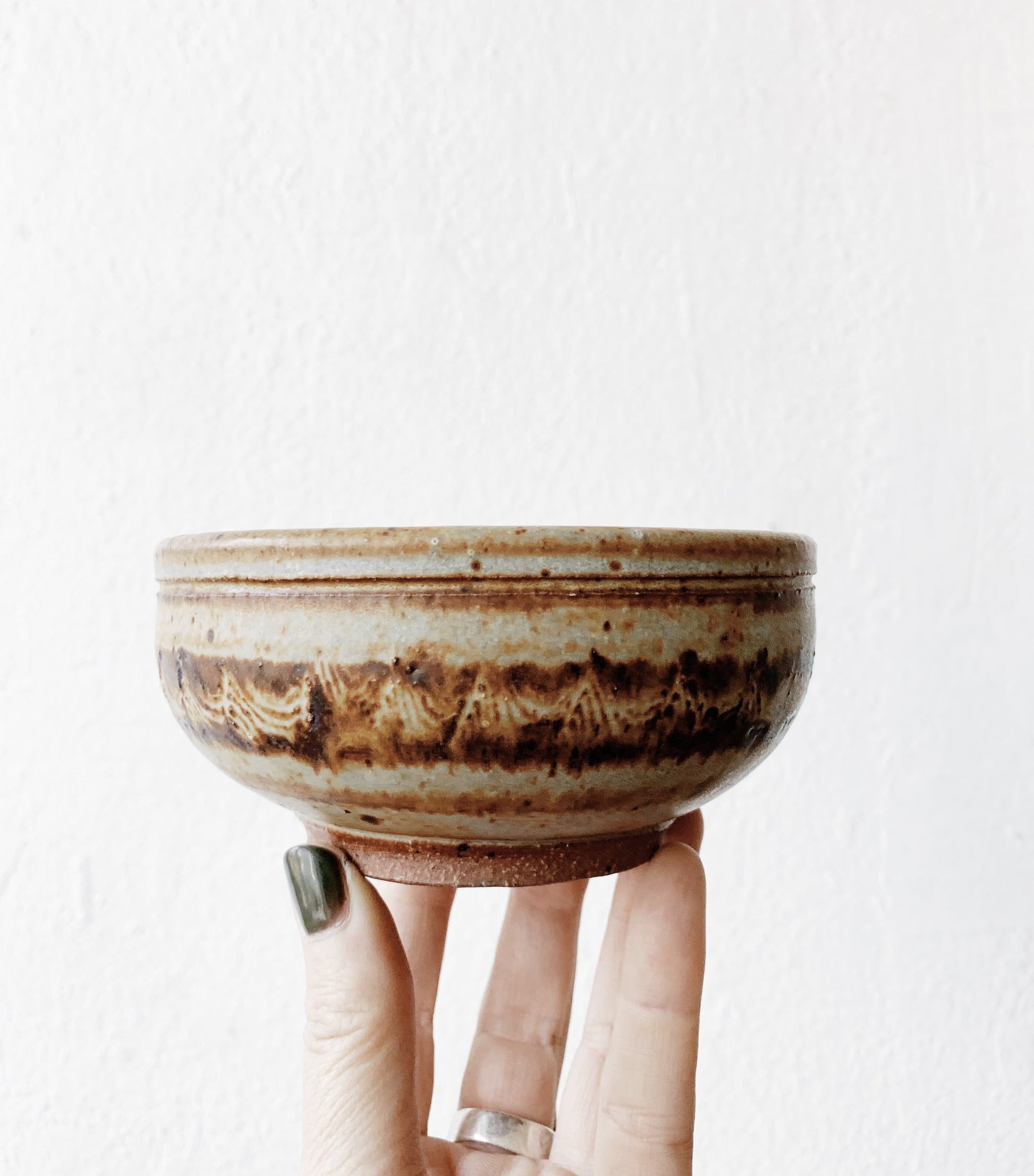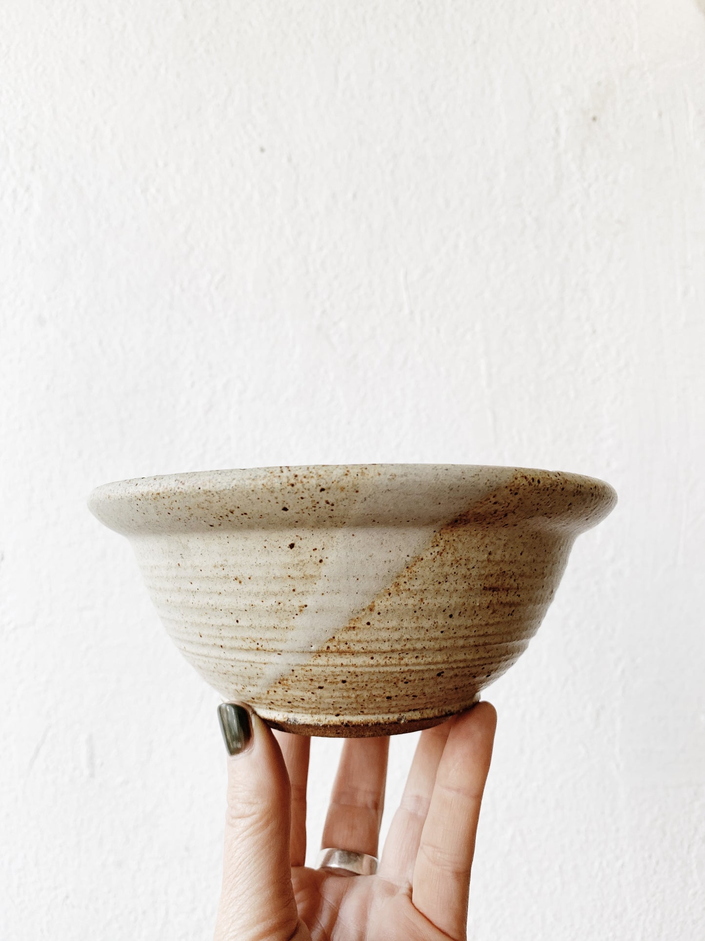 Three wonderful stoneware bowls, mismatched but made for each other. They nest perfectly and all have the same flat mottled glaze.