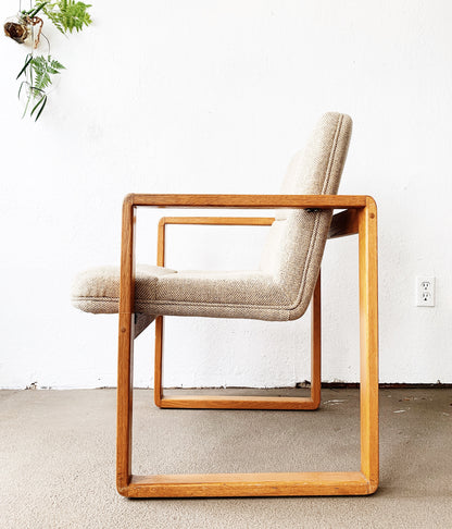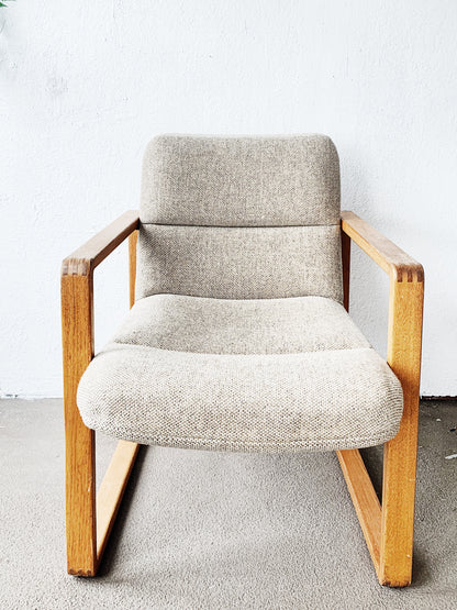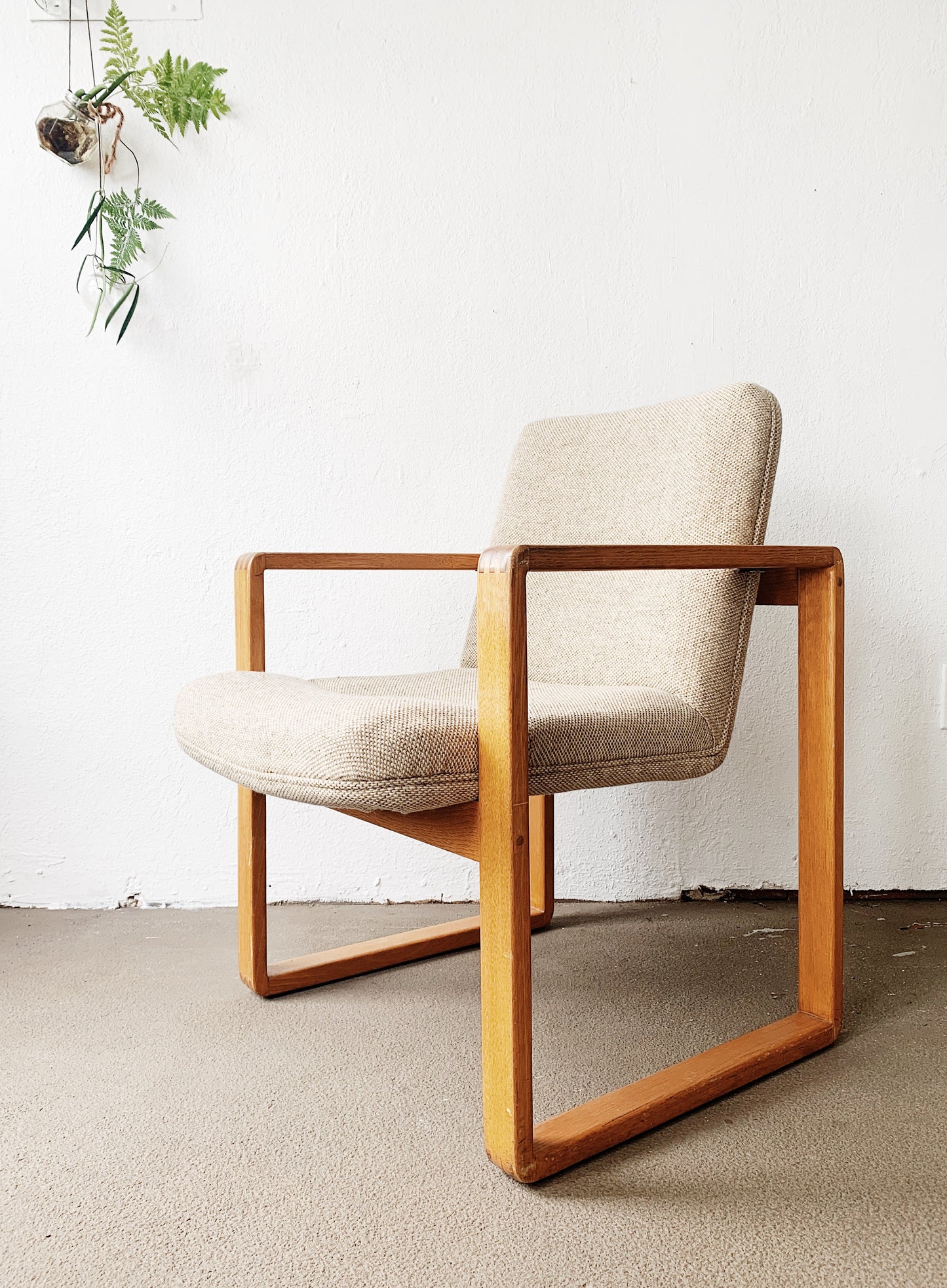 Awesome vintage mod upholstered side chair with a great solid oak cube frame.