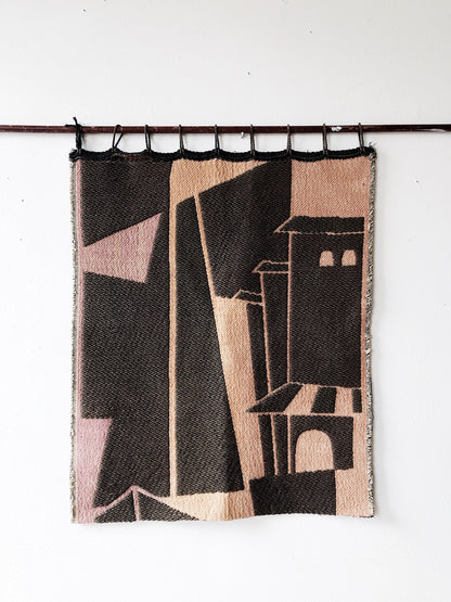We love the colors and patterning in this vintage weaving. Thick, soft multi textile fabrication, mostly cotton, linen, wool. Most likely 1950-60s. Comes with loops for hanging . Can reverse if you please