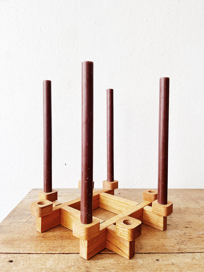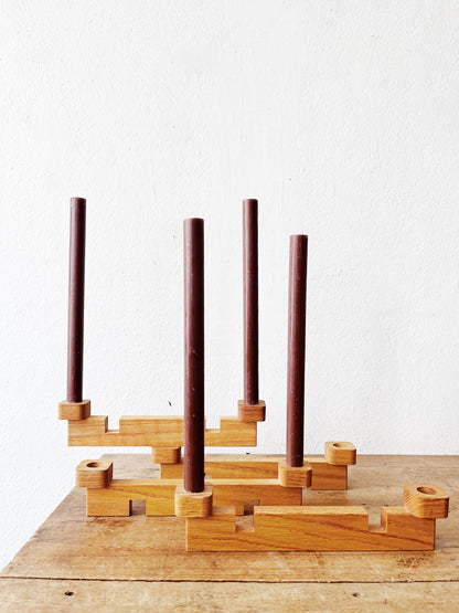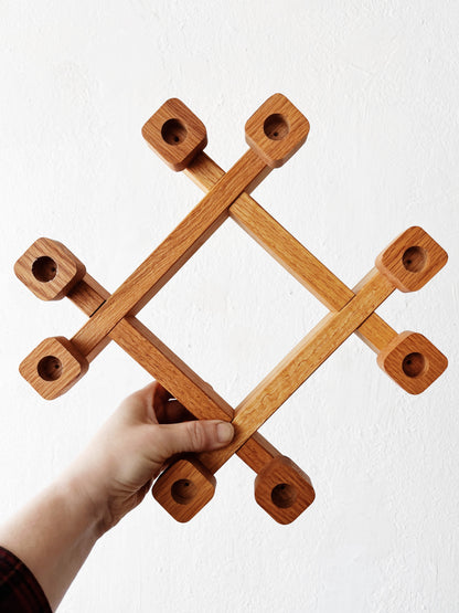 Nice modular wood candelabra from Denmark. Holds up to 8 candles as a grid, or configure as you see fit.
