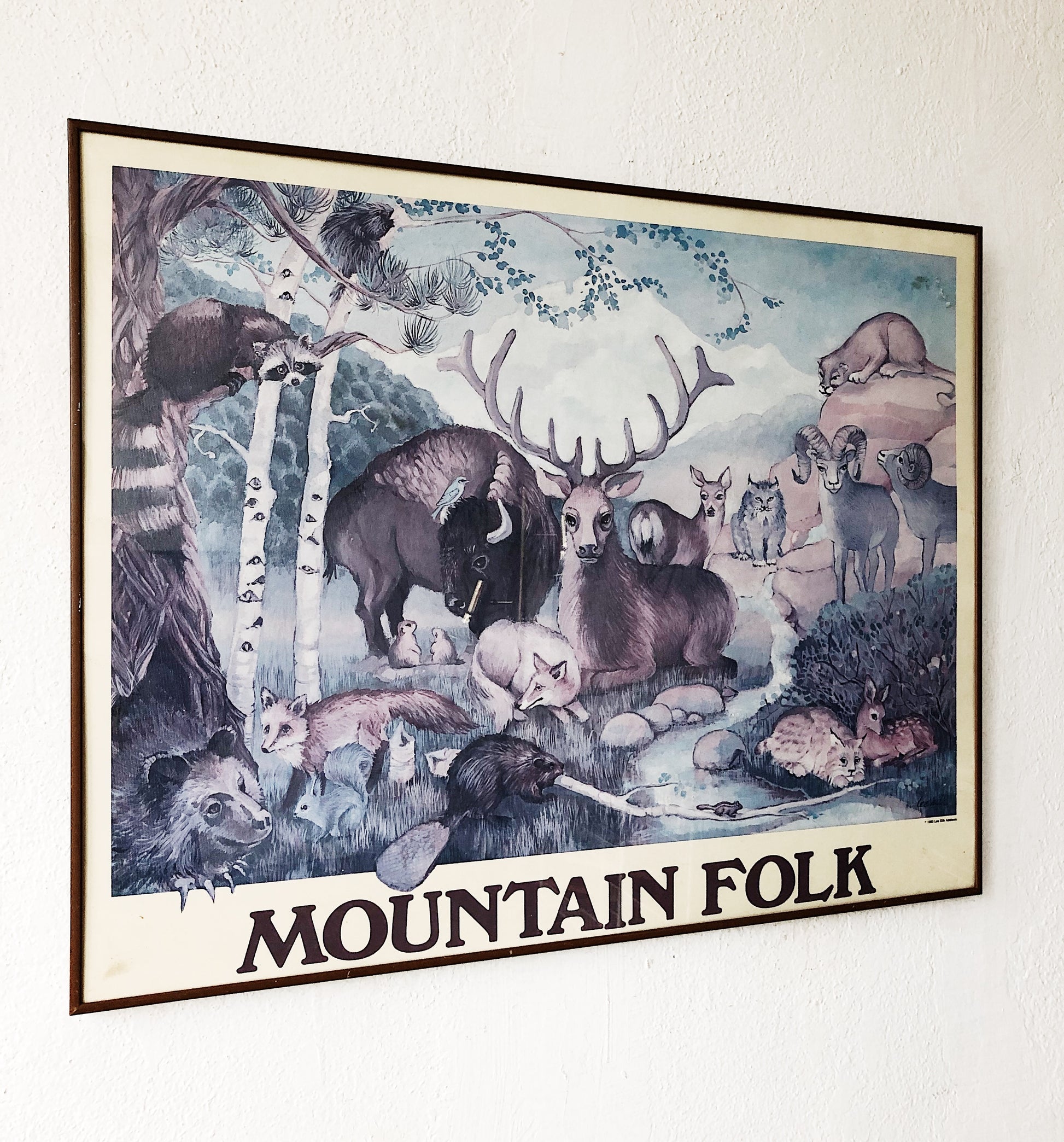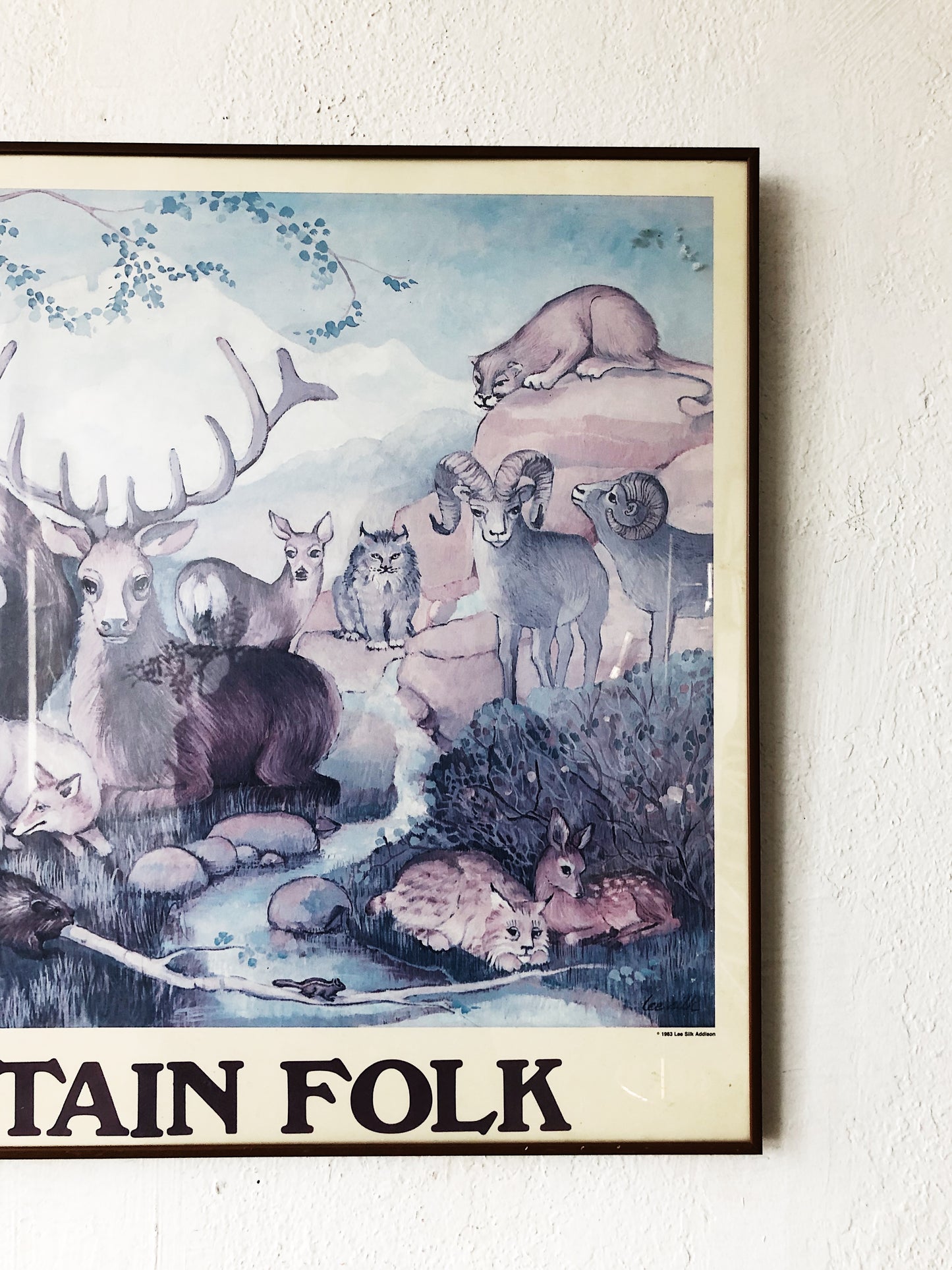 Fabulous Lee Silk Addison lithograph titled ‘mountain folk’. 1983. Great colors! Framed under glass in metal.
