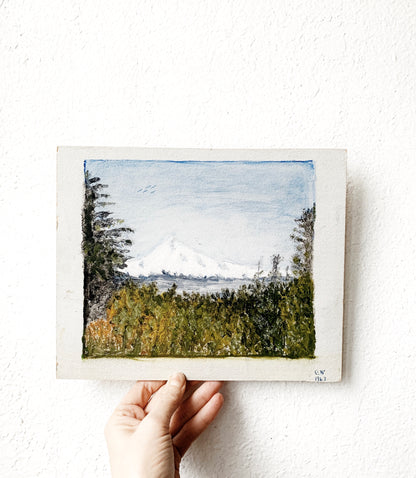 Such a sweet little Mt Hood landscape painting c1963. Signed by the artist Cara Waddell at 84 yrs old!