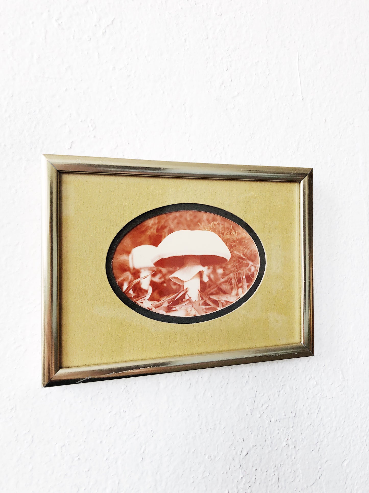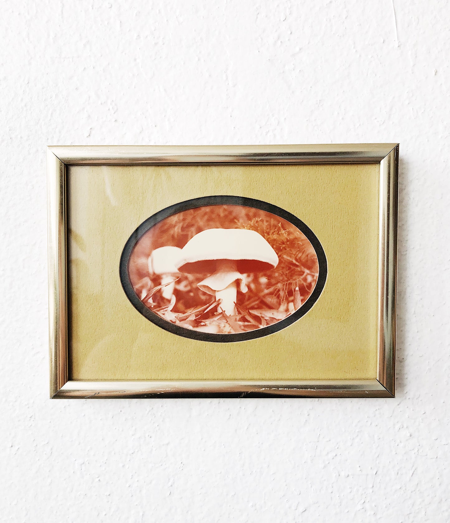 Sweetest colors to this vintage framed mushroom photograph. Framed under glass