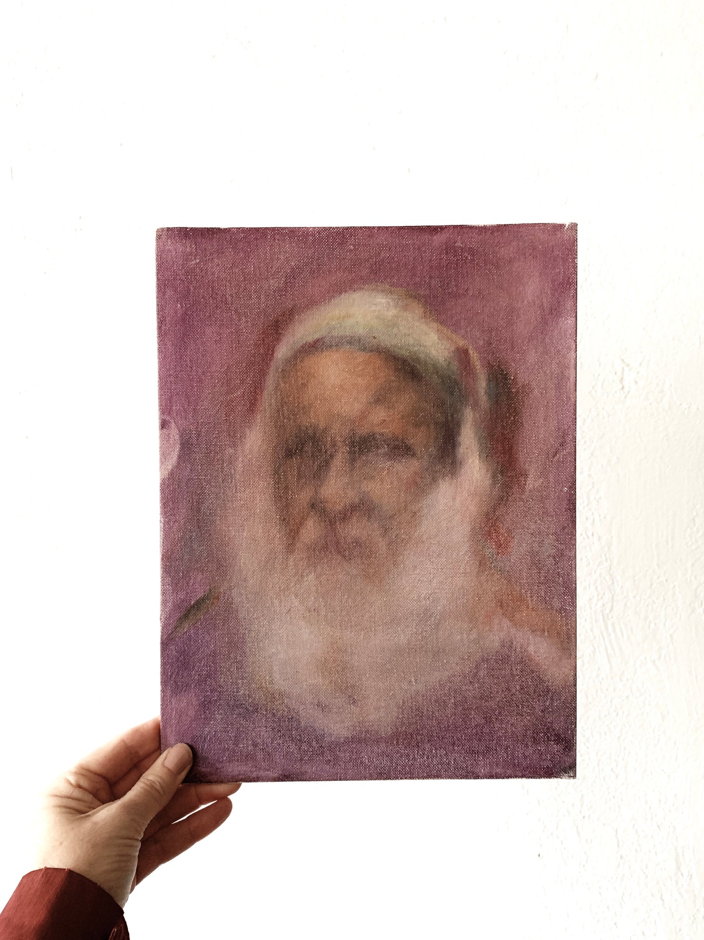 Wonderfully mystical portrait with lavender violet background which is a spiritual aura color. I like to think this is one of the ancient Sufi poets like Rumi or Hafiz
