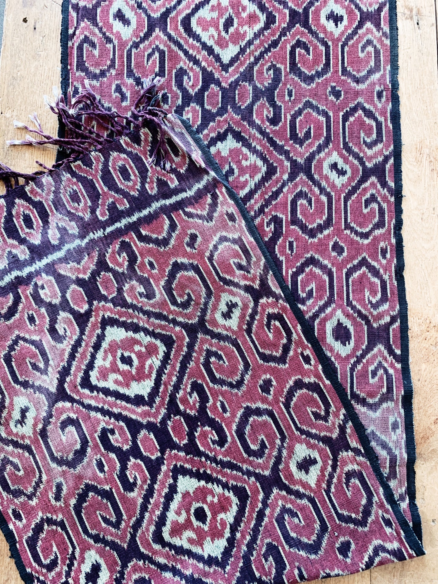 Beautiful vintage naturally dyed ikat textile. This can be hung on the wall as art, used as a table runner, or worn.