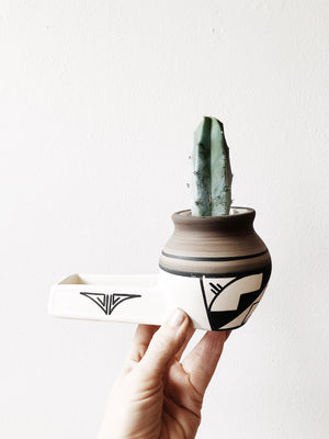 Unique double planter made by the Navajo tribe. Two basins for potting up with your favorites. Sold without cactus