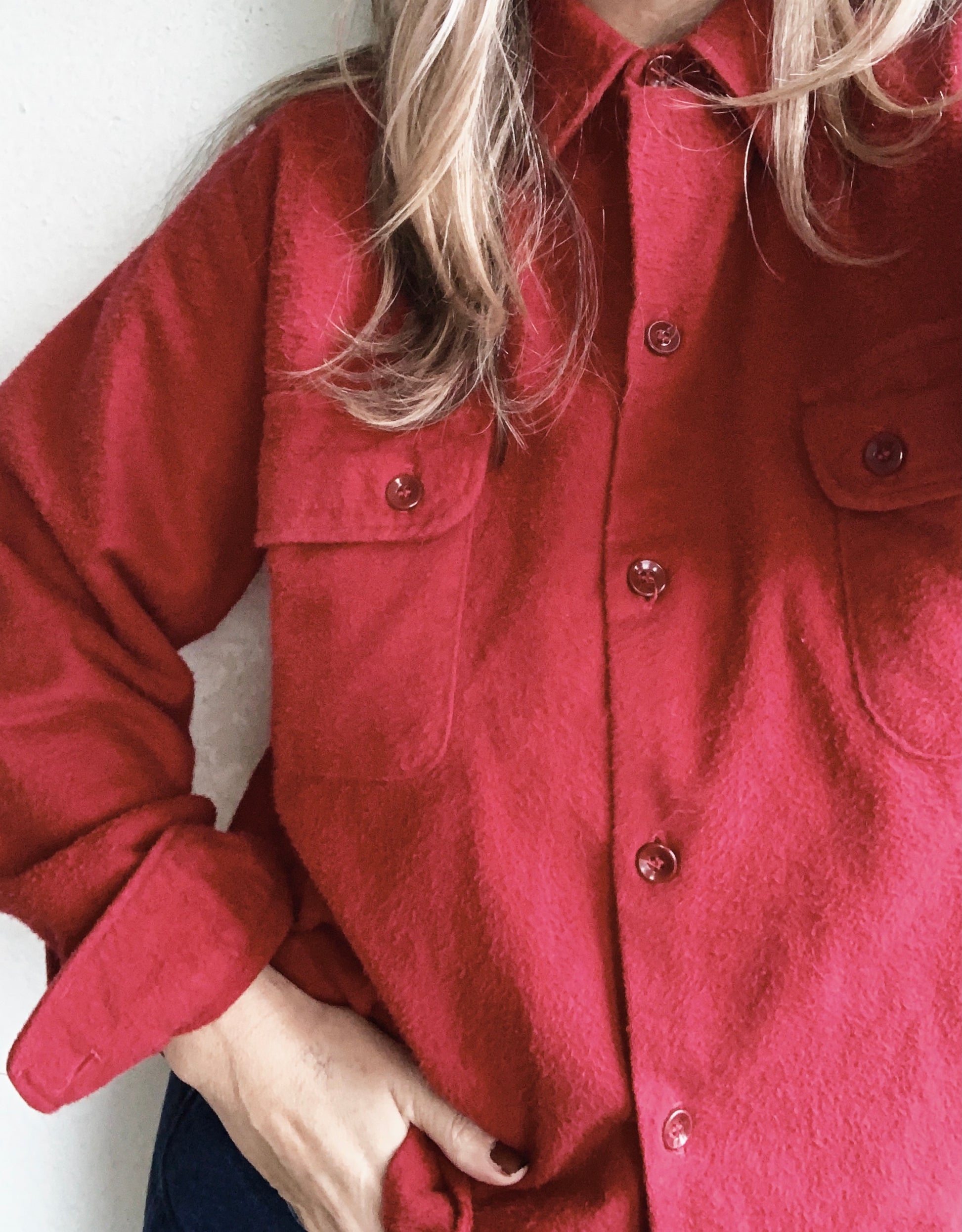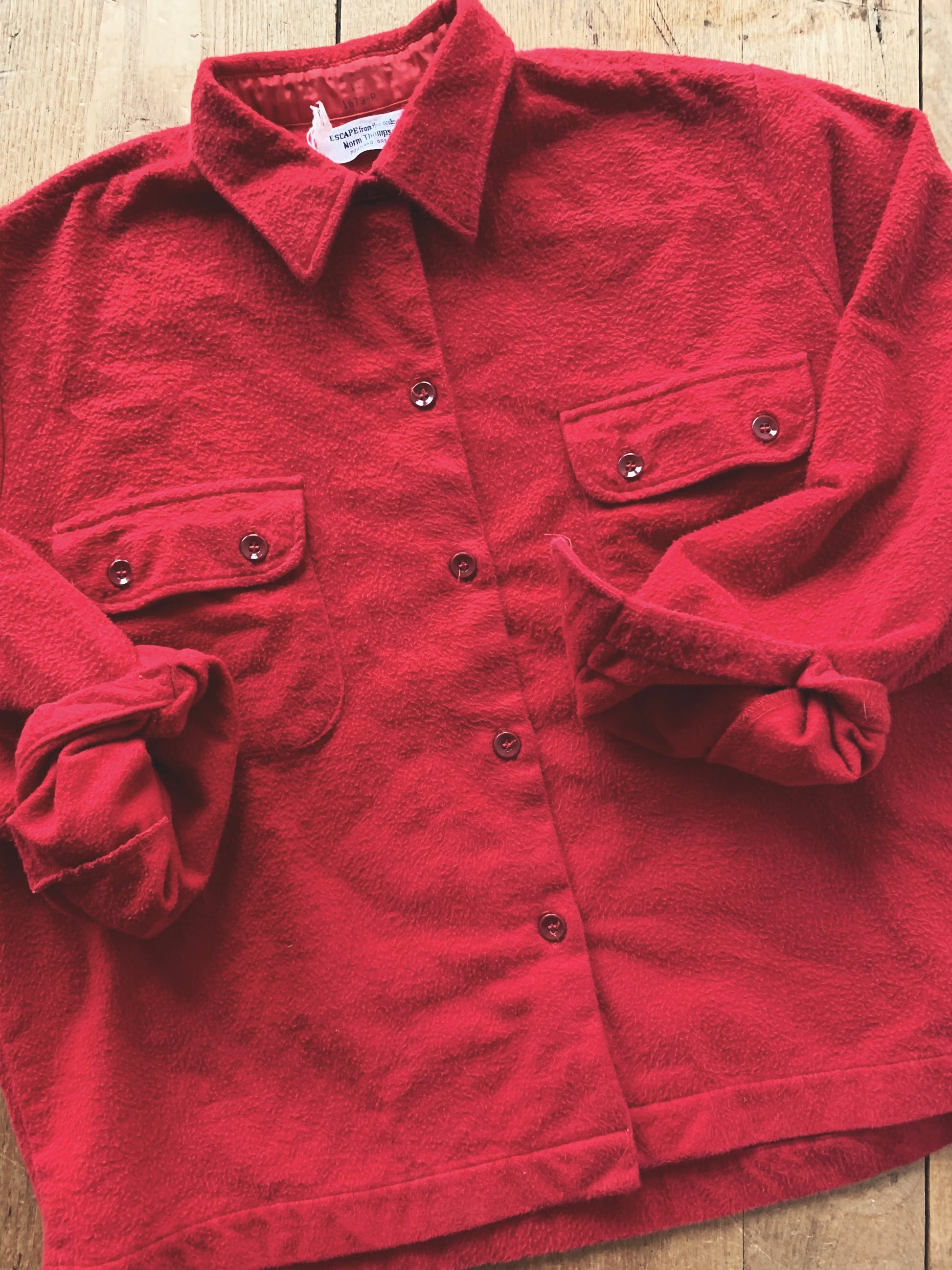 Super soft and cozy! Vintage cherry red cotton flannel by Norm Thompson, Portland, OR