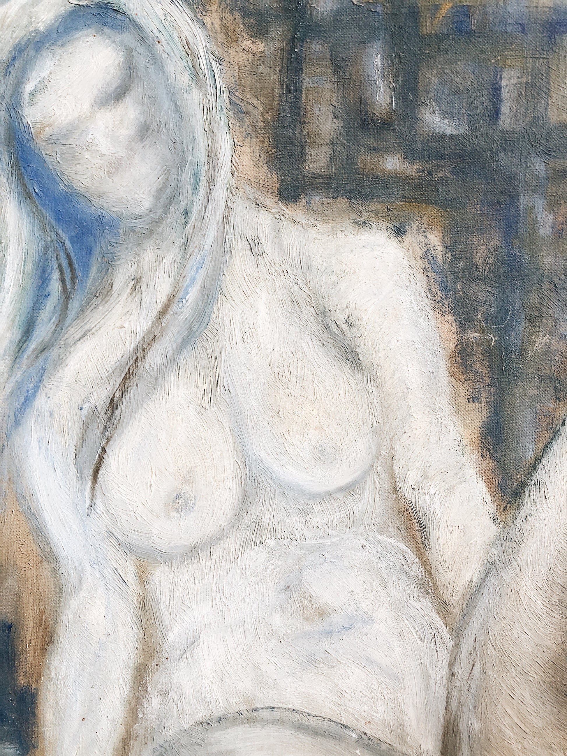 Someones own vintage version of ‘blue nude’. This one has Matisse influence for sure....the textures are lovely, as are the colors. On canvas board