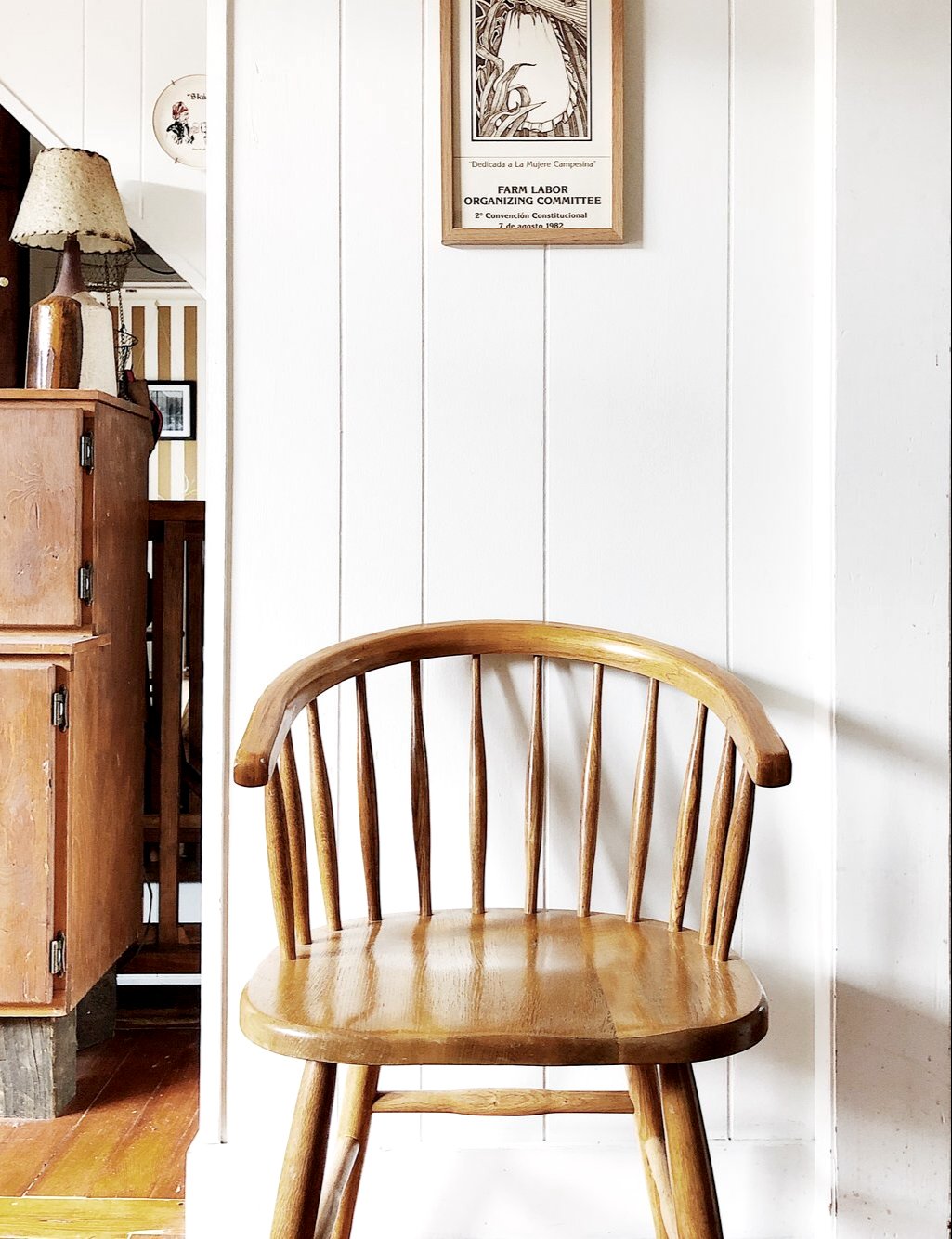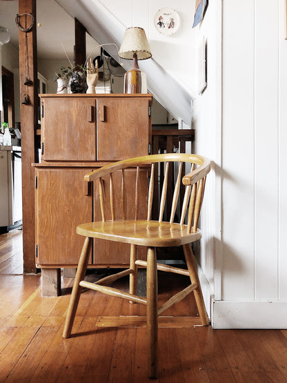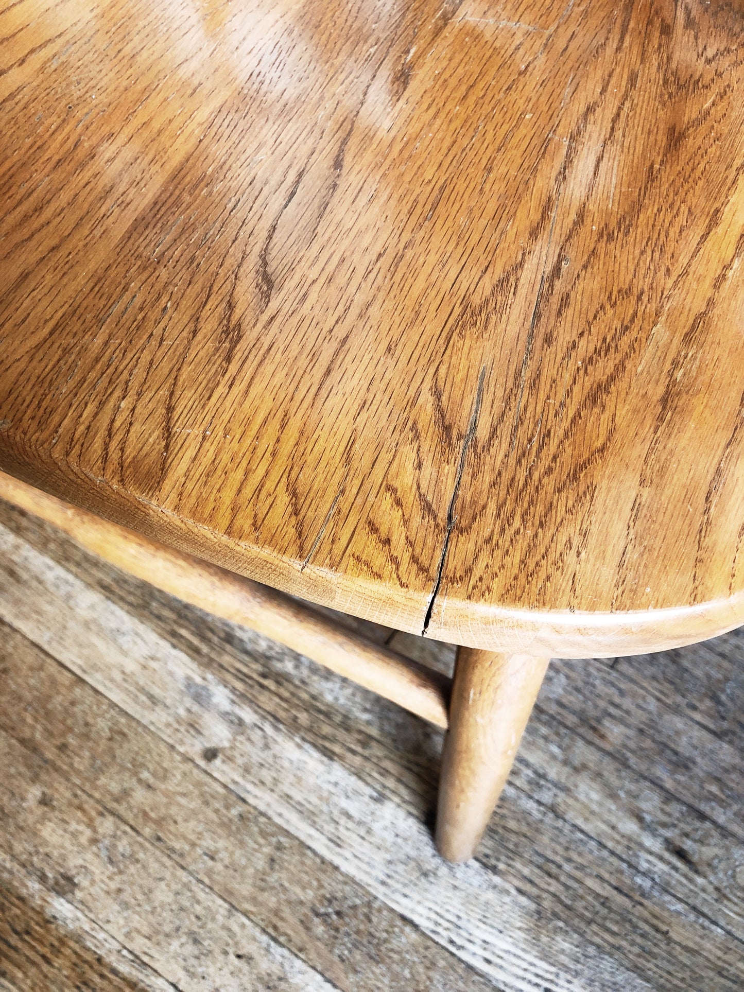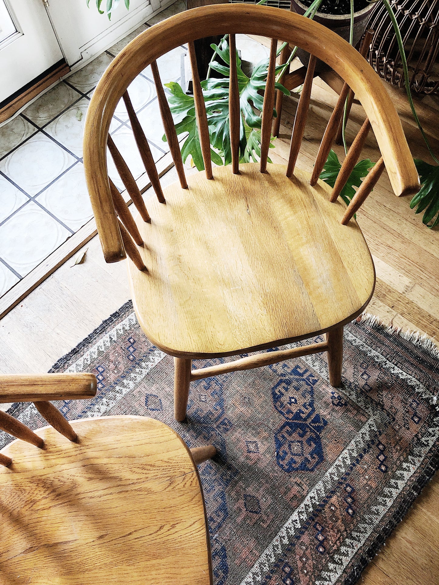 Compact footprint on these classic barrel back chairs. Oak wood and super sturdy. Nice craft modern look