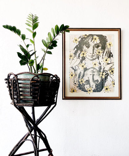 Beautiful numbered lithograph from 1971. 110/200. colors are pale pink, yellow and sea green. It’s signed and framed under glass