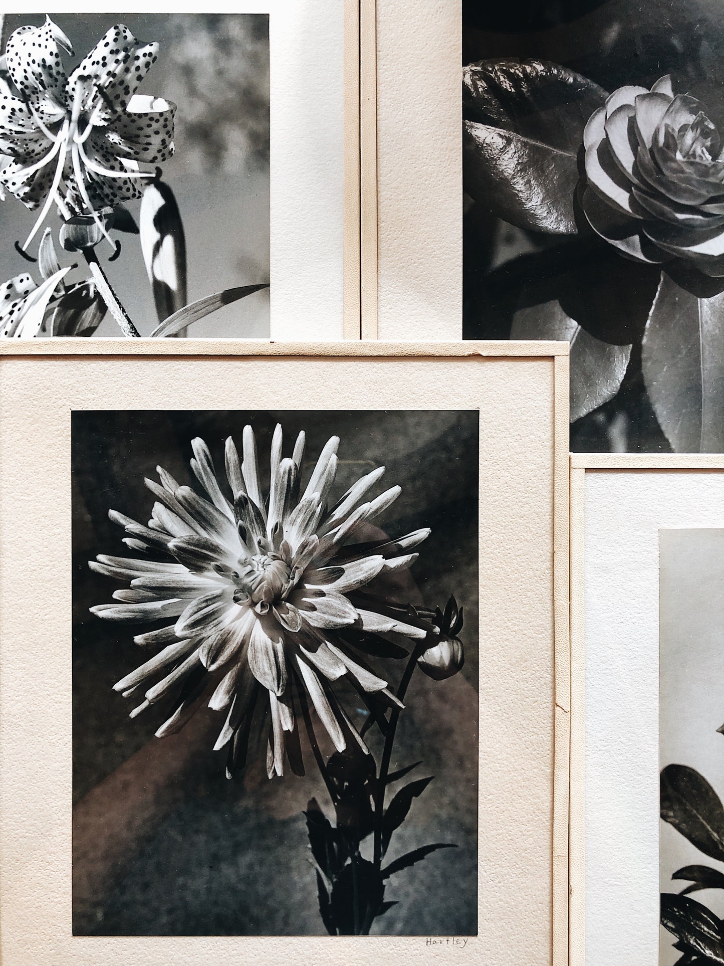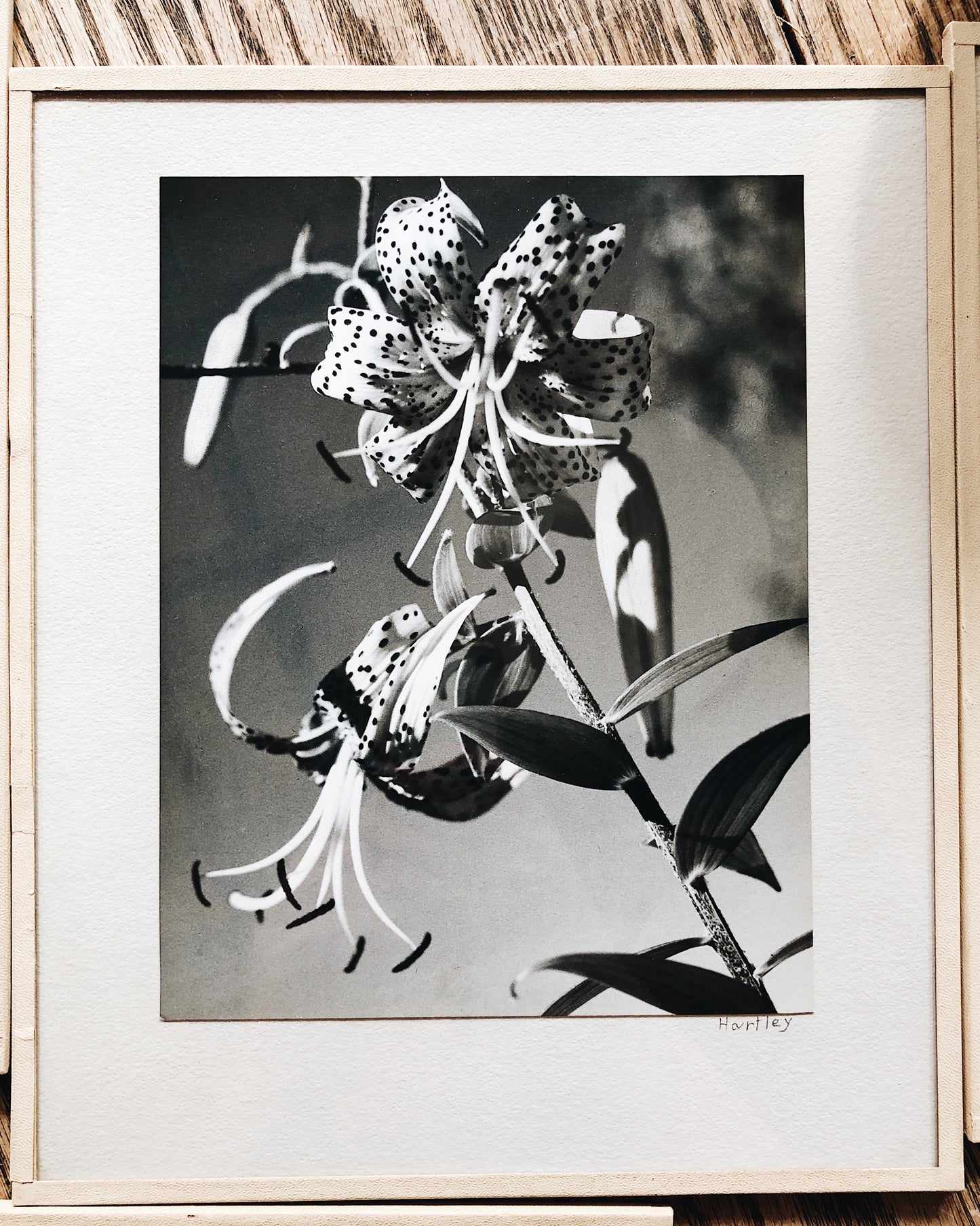 Stunning original film photo of a botanical specimen. Tones are ones that only film can accomplish. Signed Hartley. Framed in simple tape under glass.