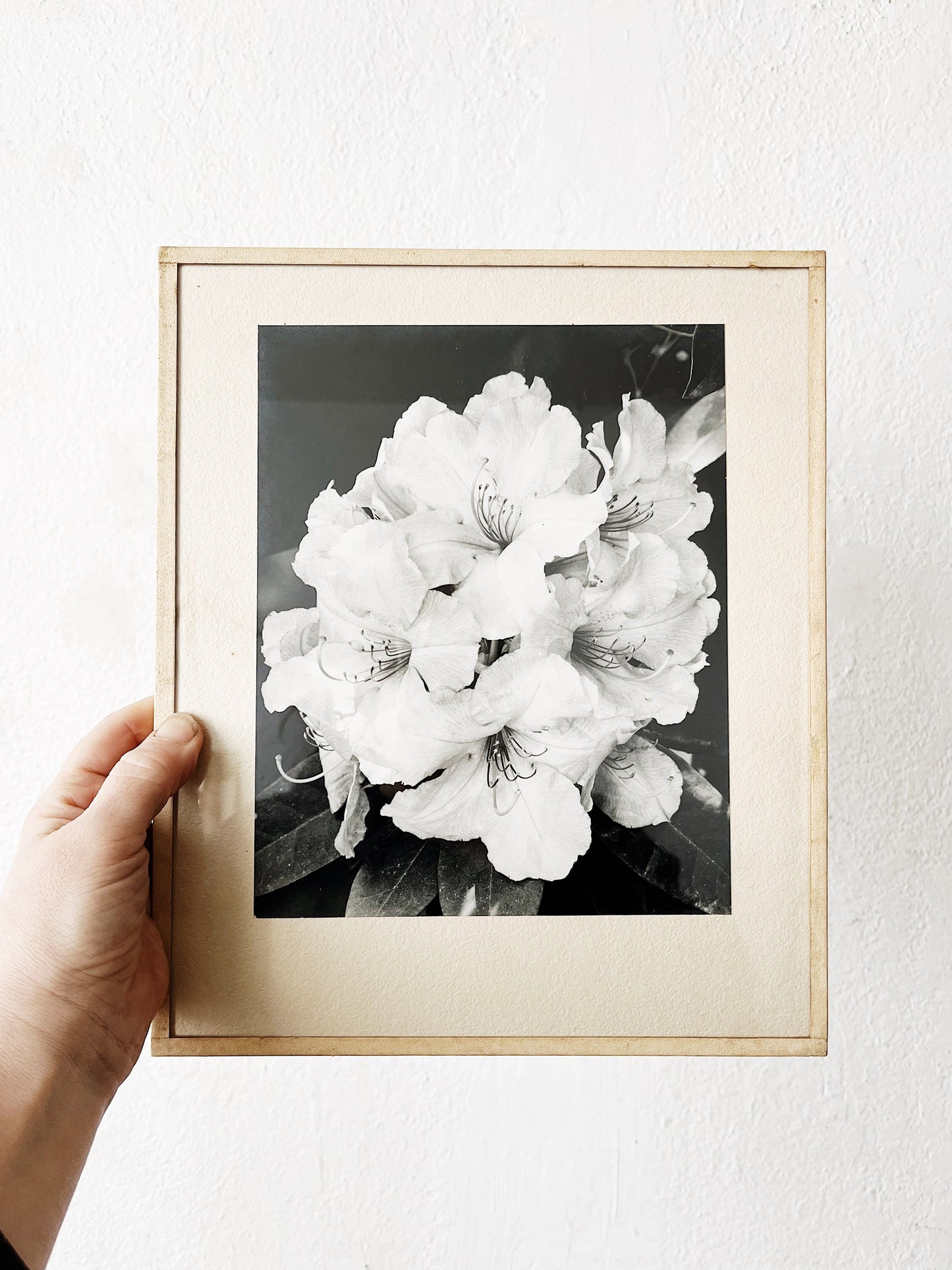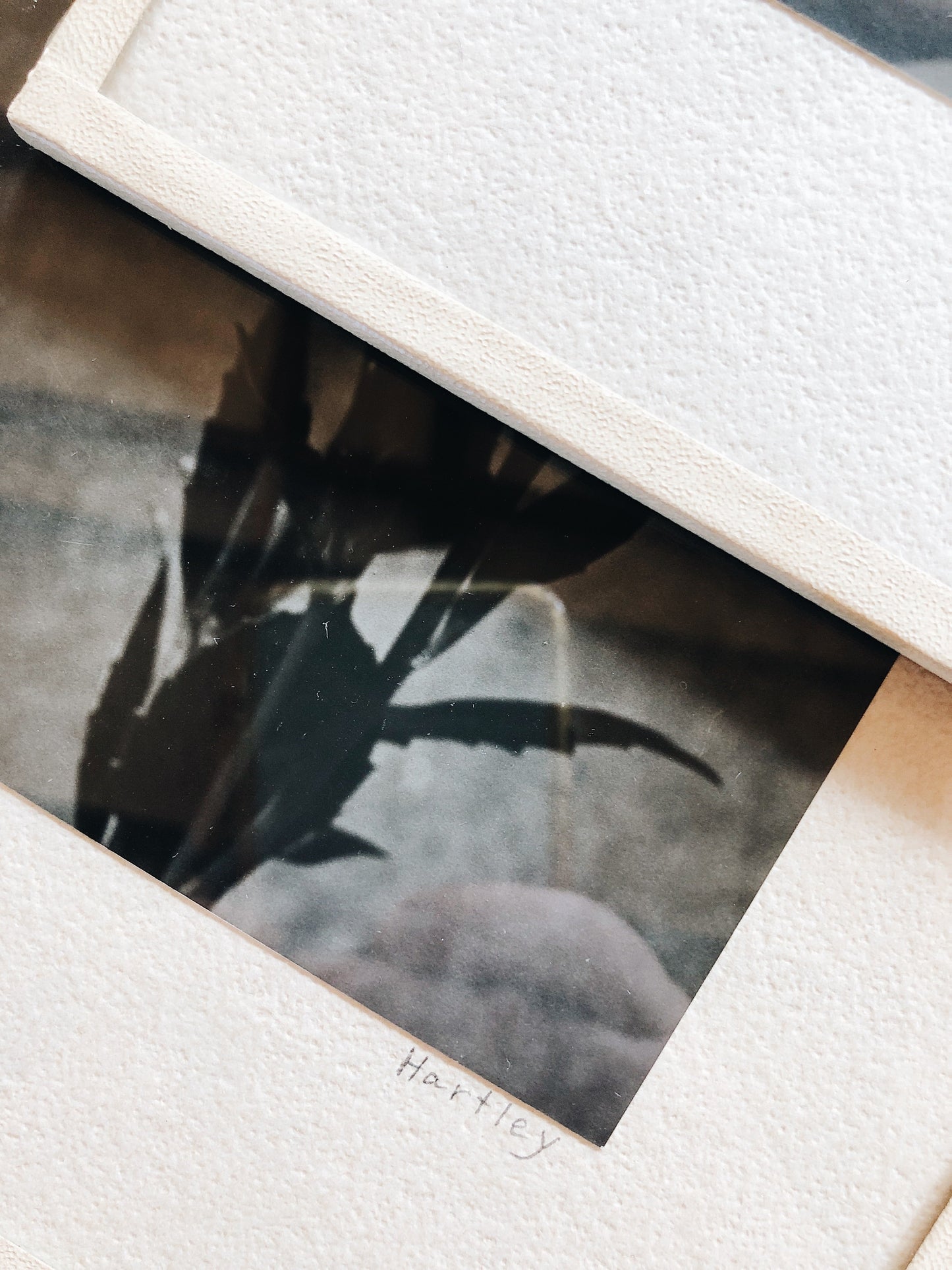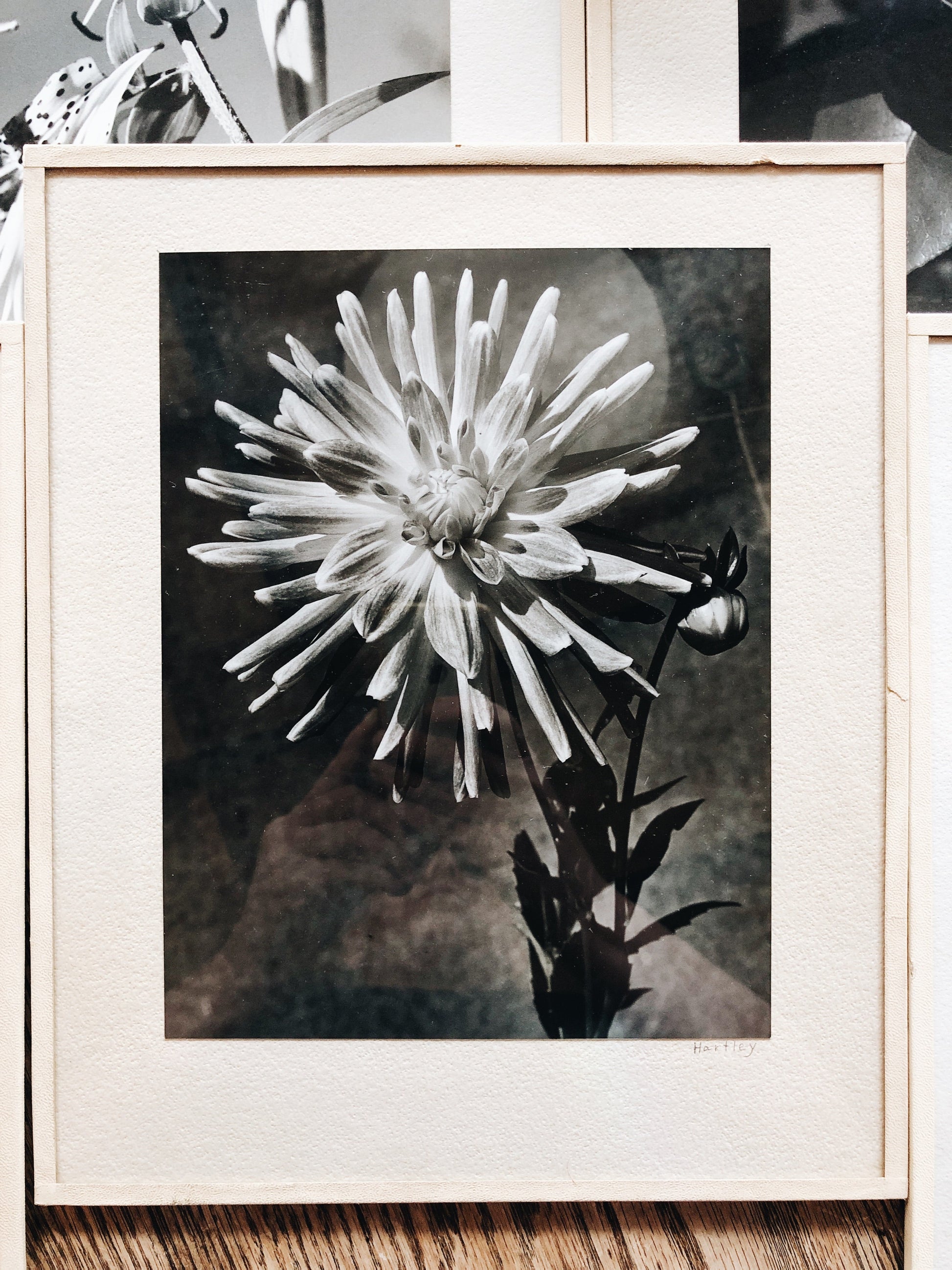 Stunning original film photo of a botanical specimen. Tones are ones that only film can accomplish. Signed Hartley. Framed in simple tape under glass.