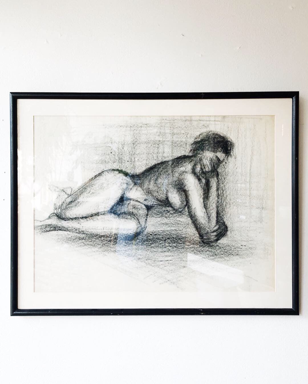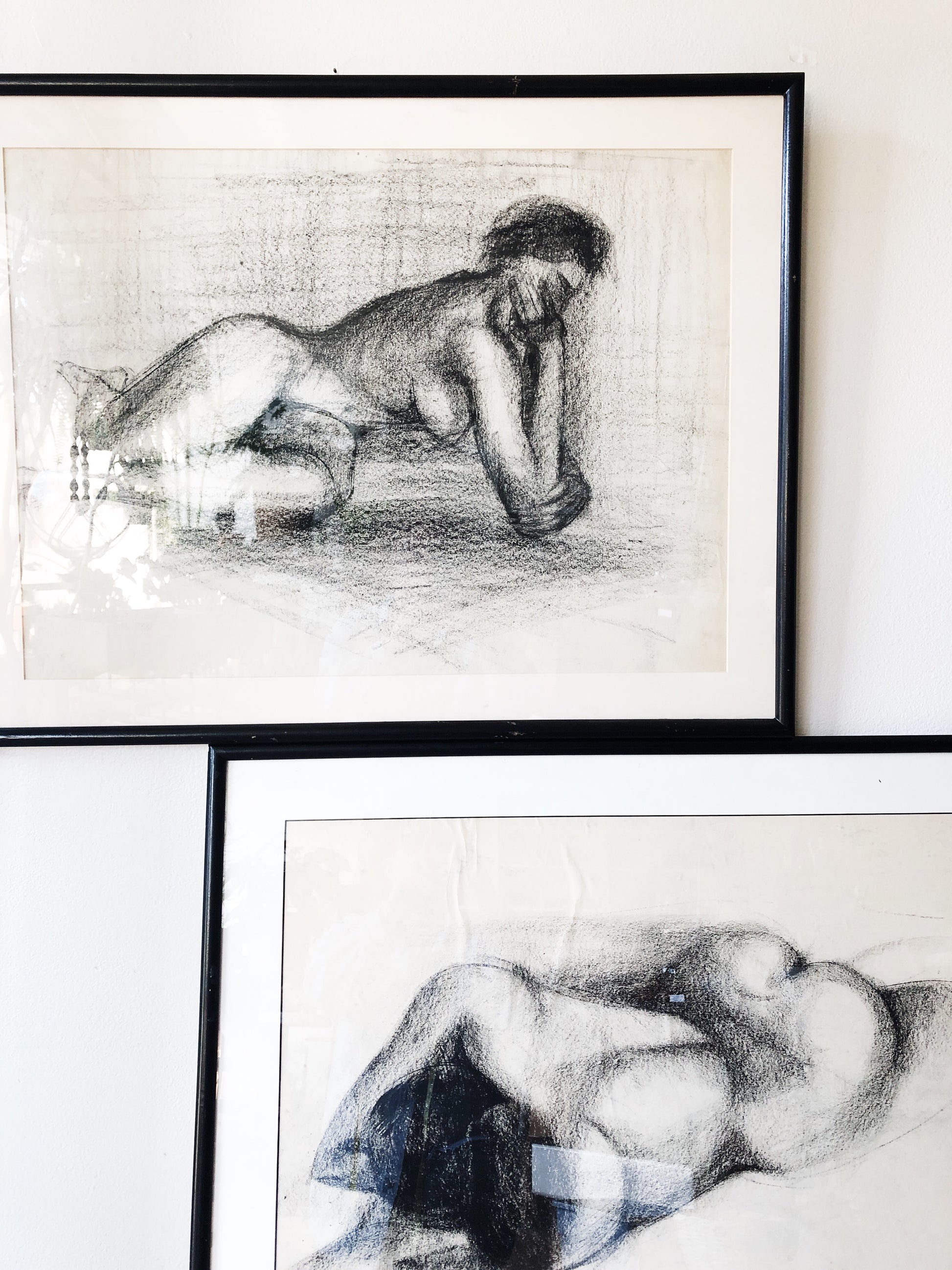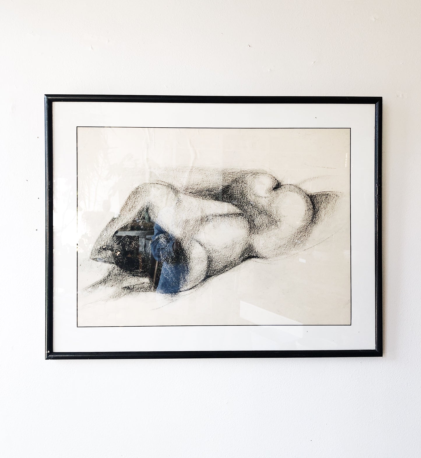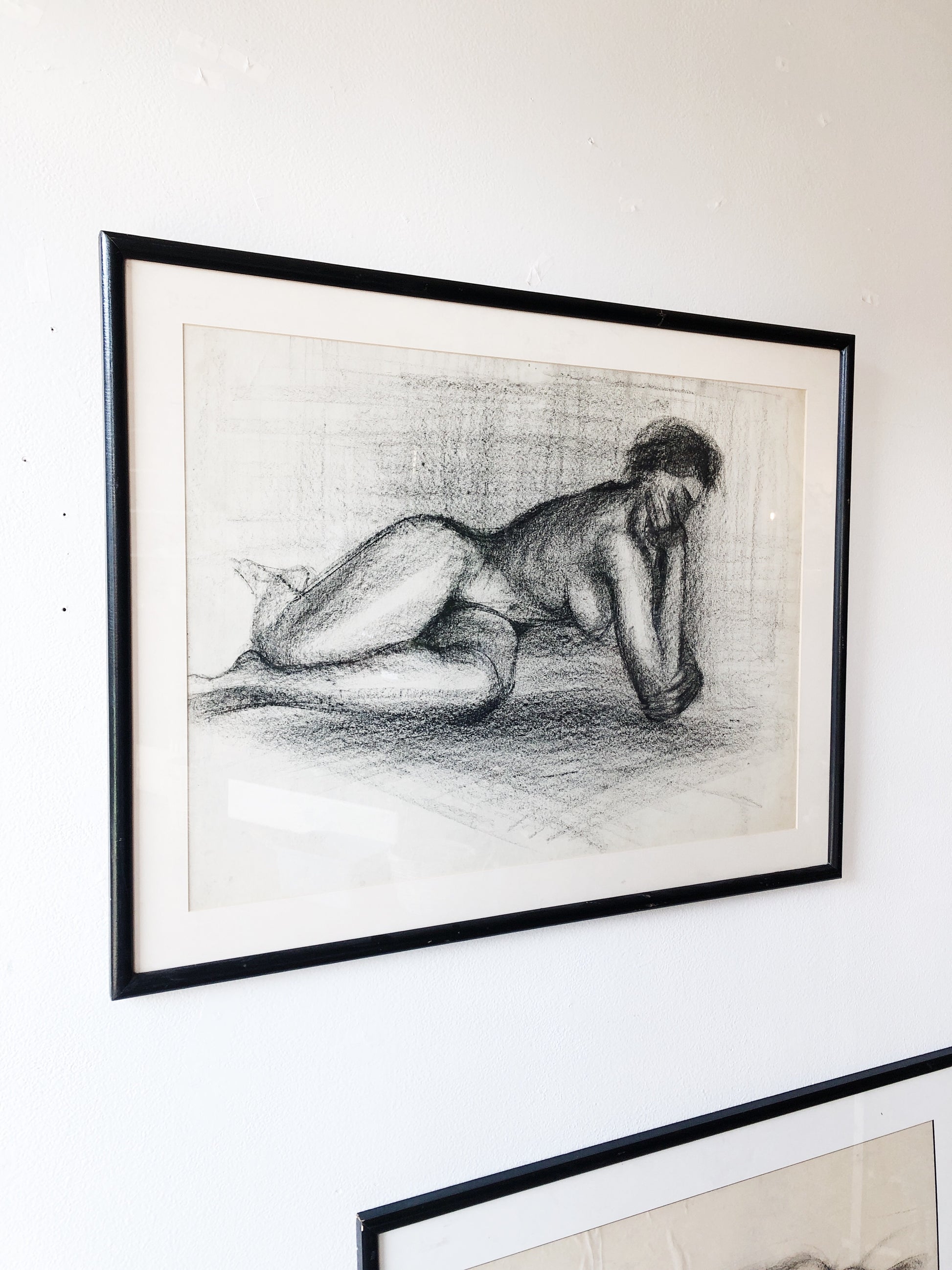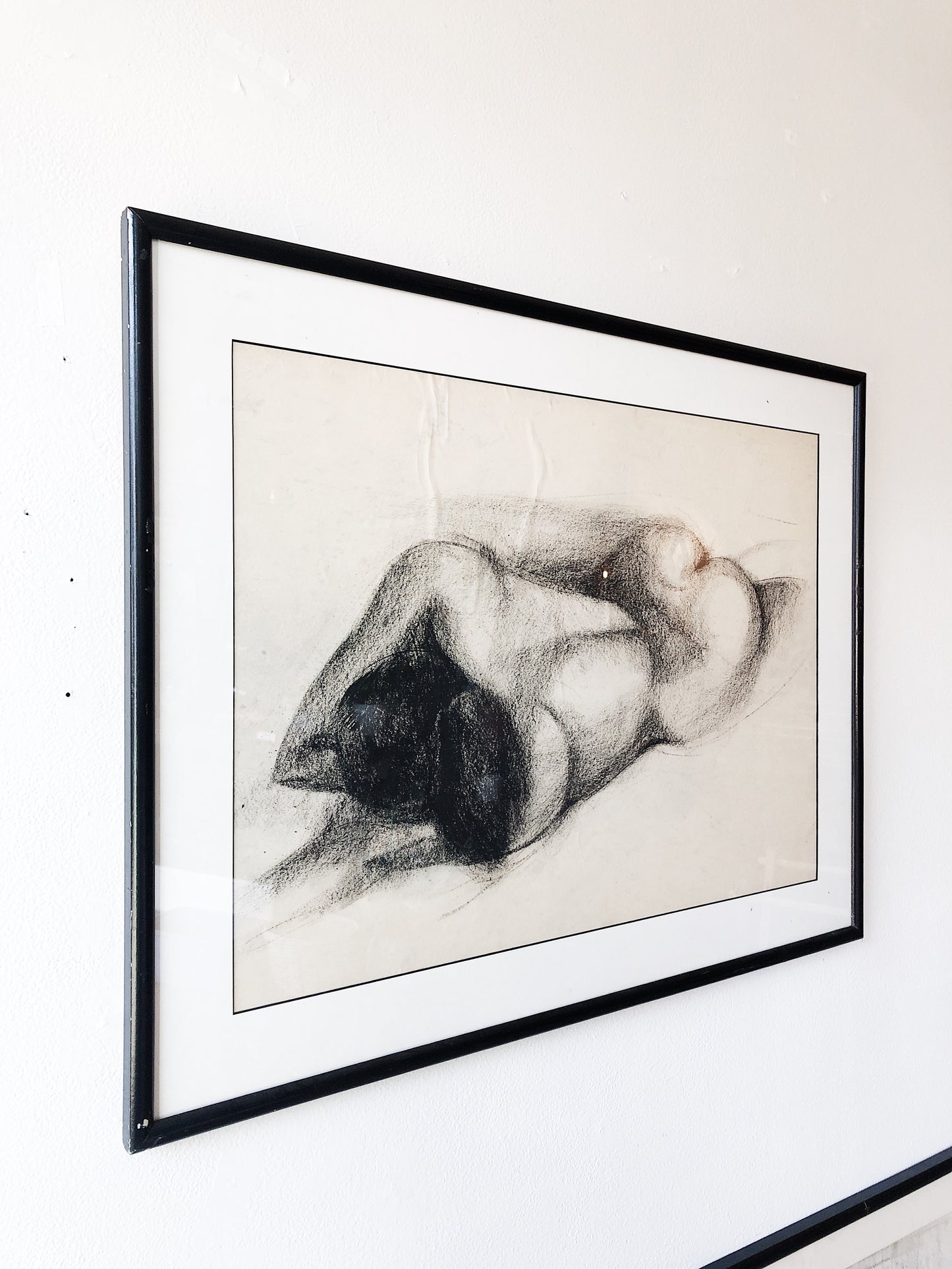 Lovely original charcoal nudes. Framed in black painted wood and glass.