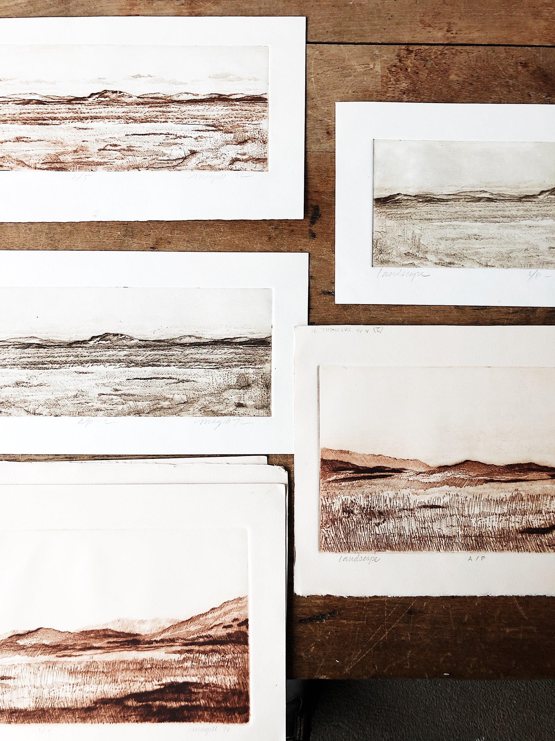 Earthy and textured hi desert etching By artist J Magill 1972. Intaglio printed number 4/5