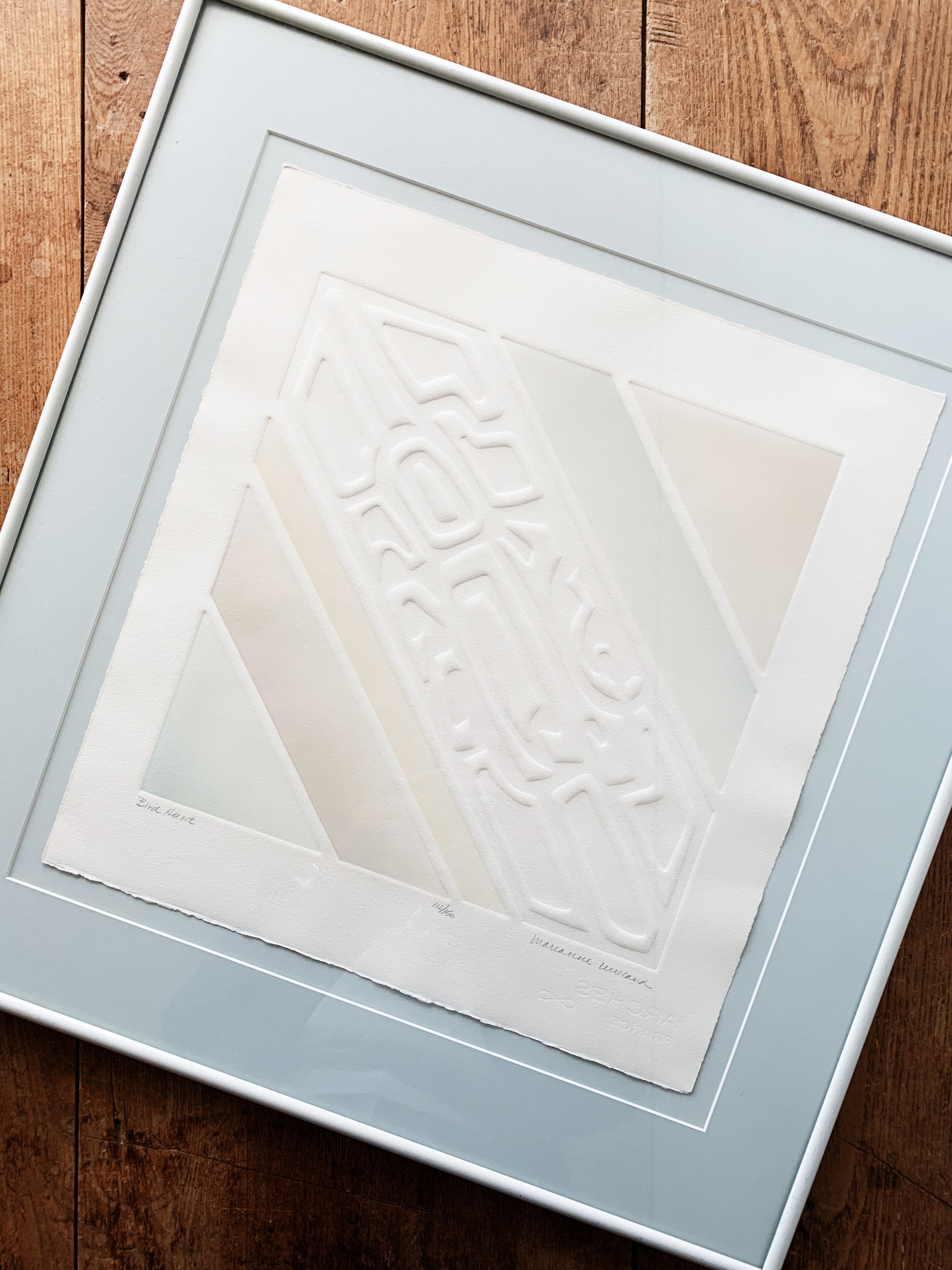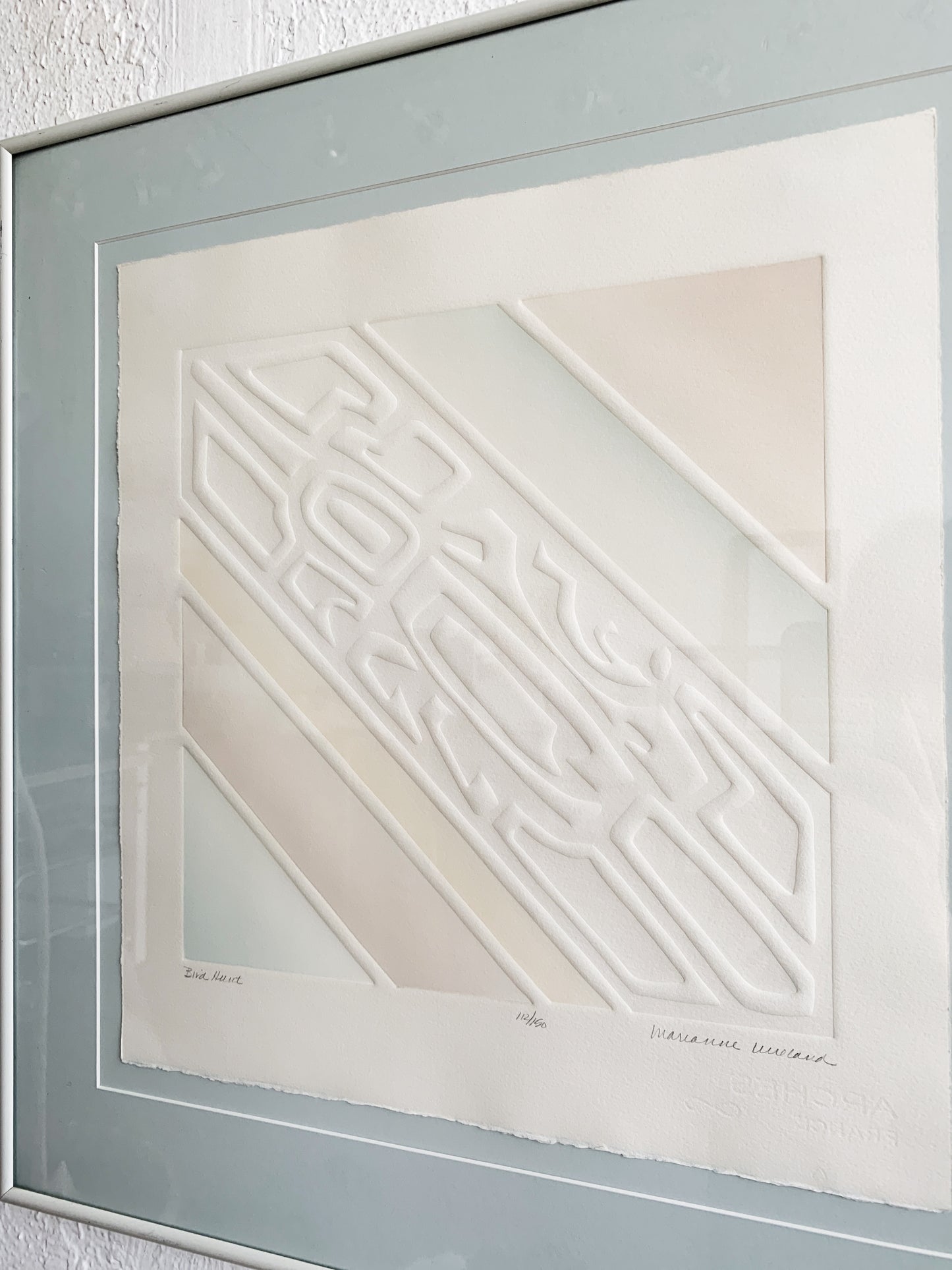 Really beautiful vintage limited edition embossed signed print. ‘Bird Hunting 112/150. Professionally matted and framed in a metal gallery frame. Under glass, wire hanger. By renowned Alaskan artist Marianne Wieland. Collectible.