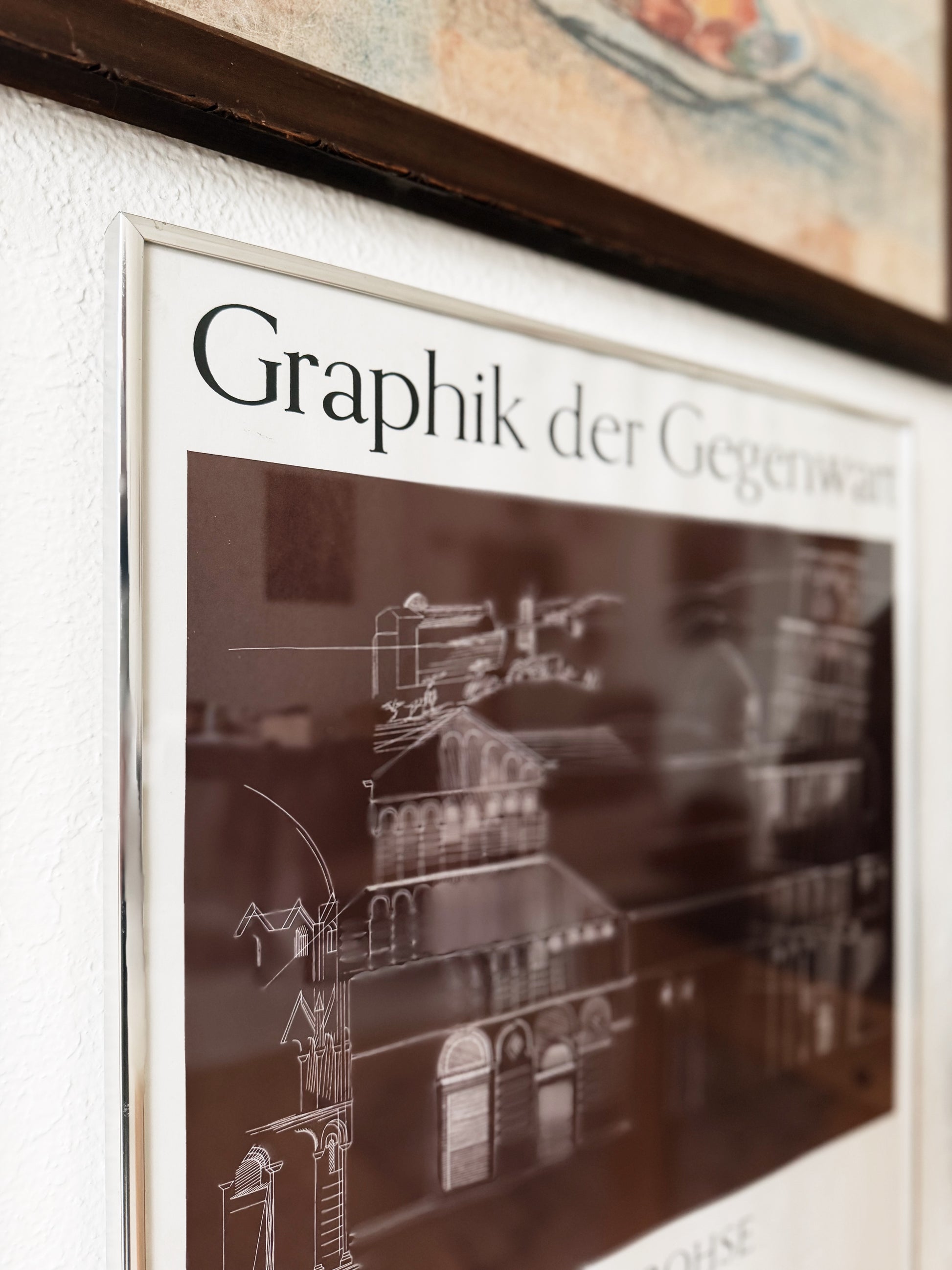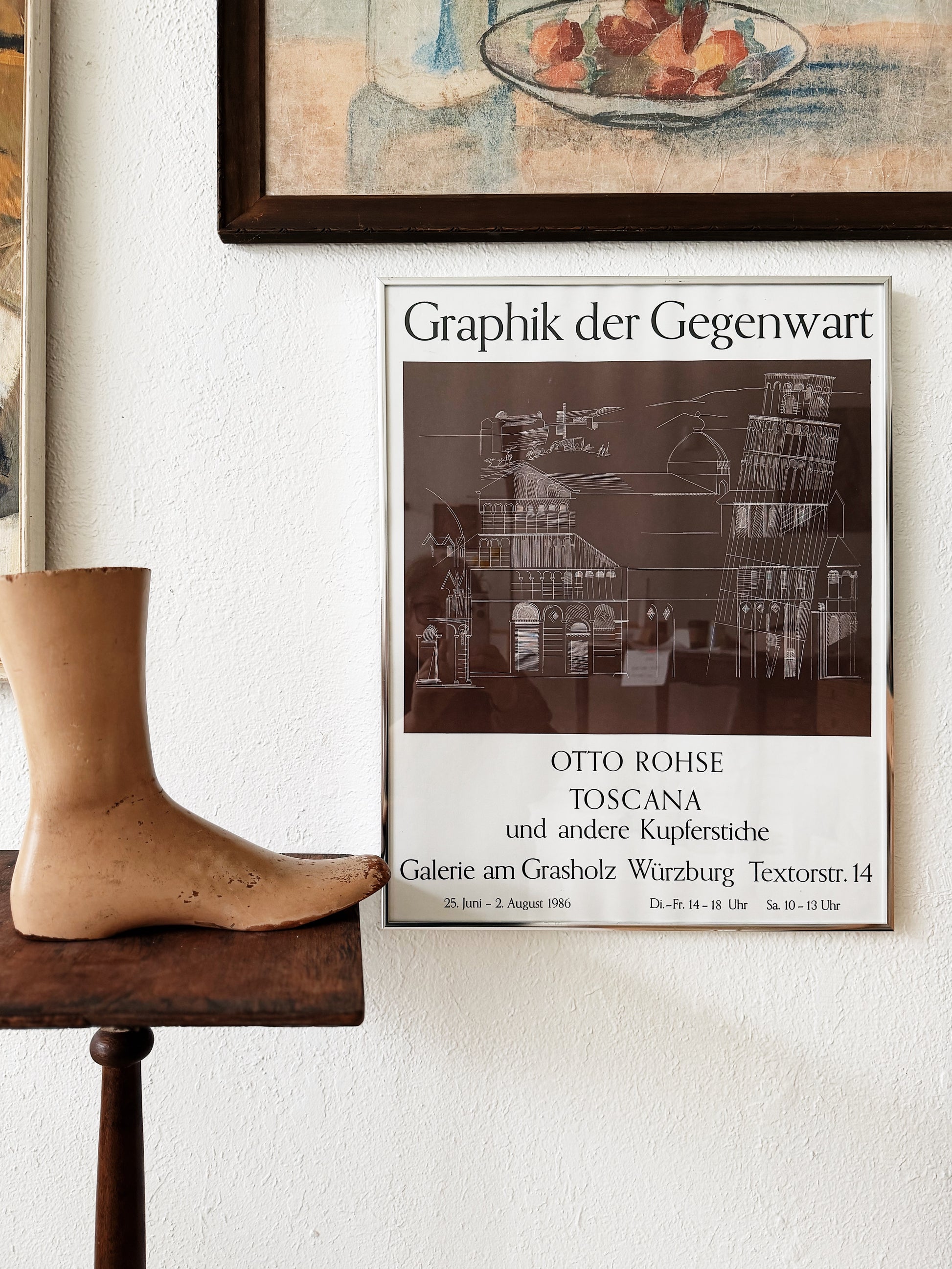 Fabulous exhibit poster for Otto Rohse. Dated 1986. Fabulous Gallery Quality Printed Offset Lithograph line drawing as image. Framed in chrome under glass.