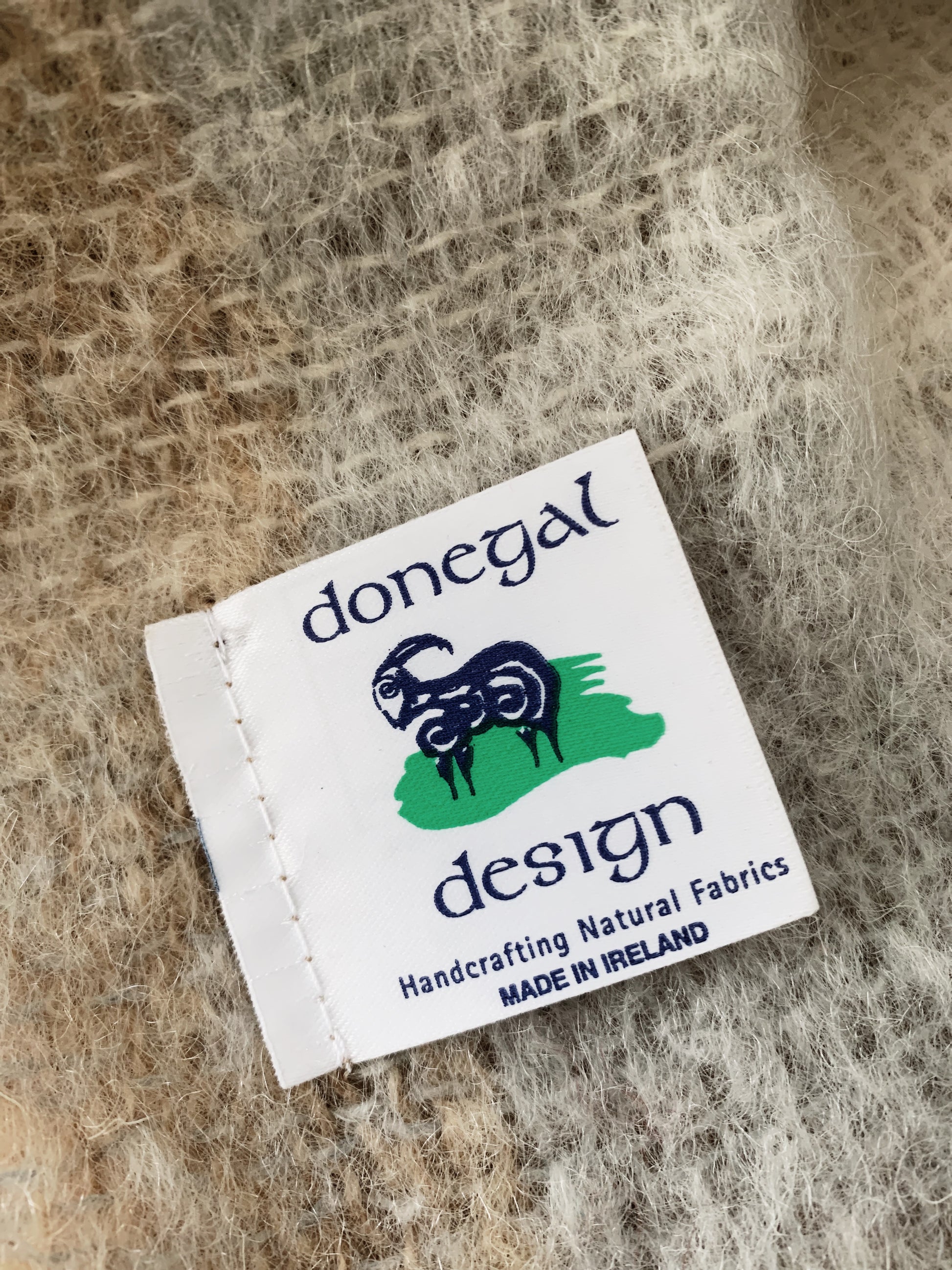 The brown striped is oversized and can be worn as a shawl or large scarf. 25.5x70”