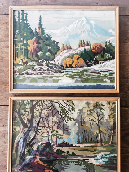 Two lovely old landscapes in vintage wood frames, professionally cleaned up. Really Lovely. 12x15”