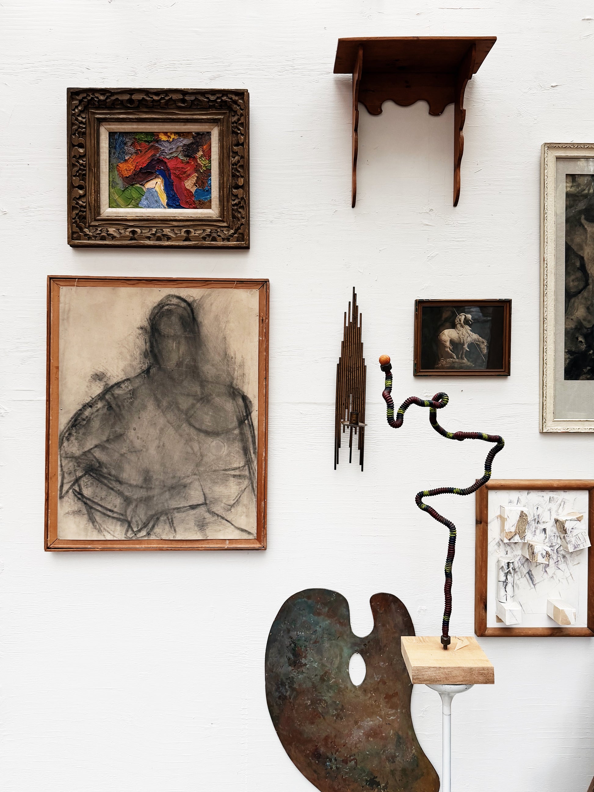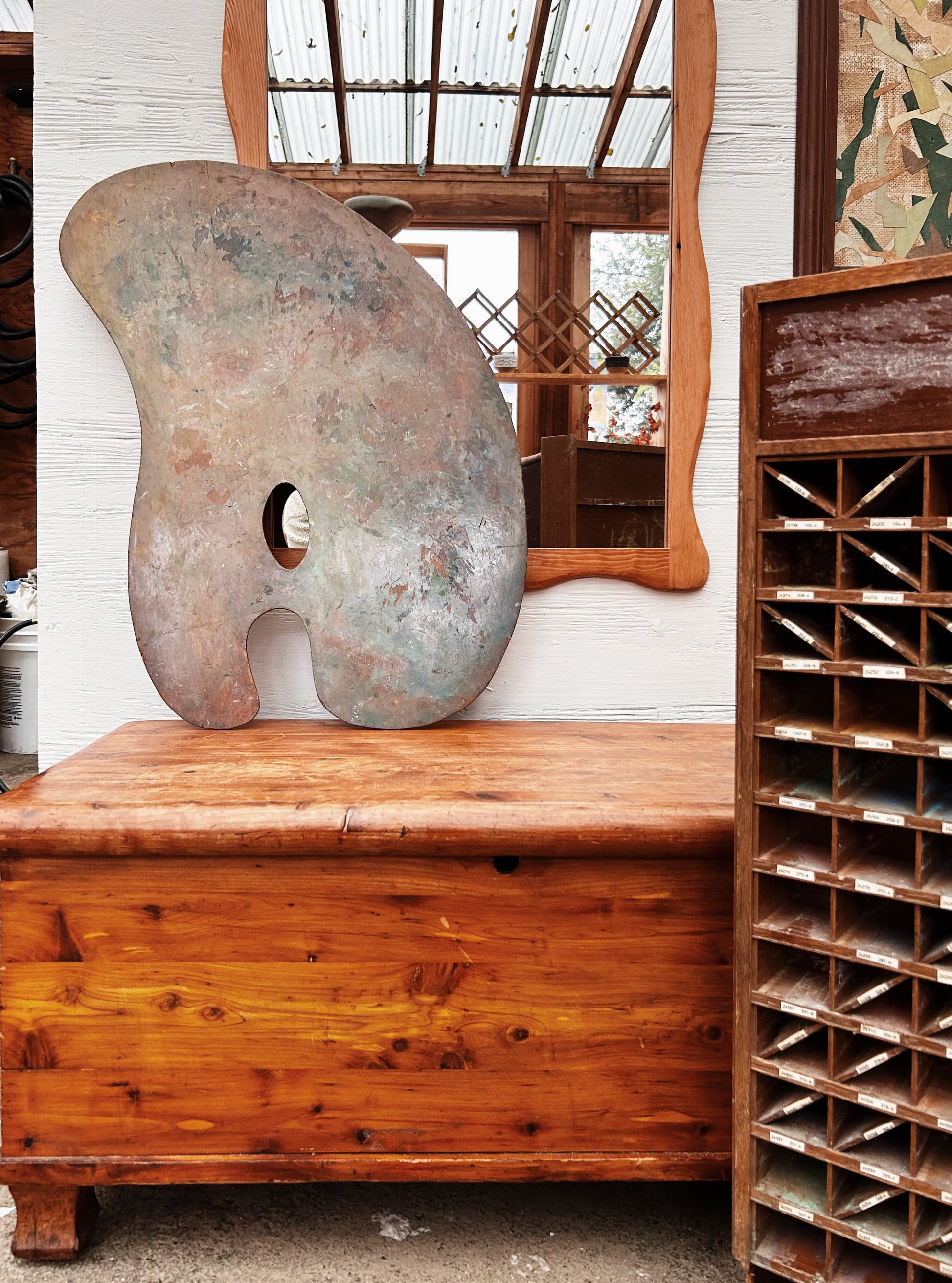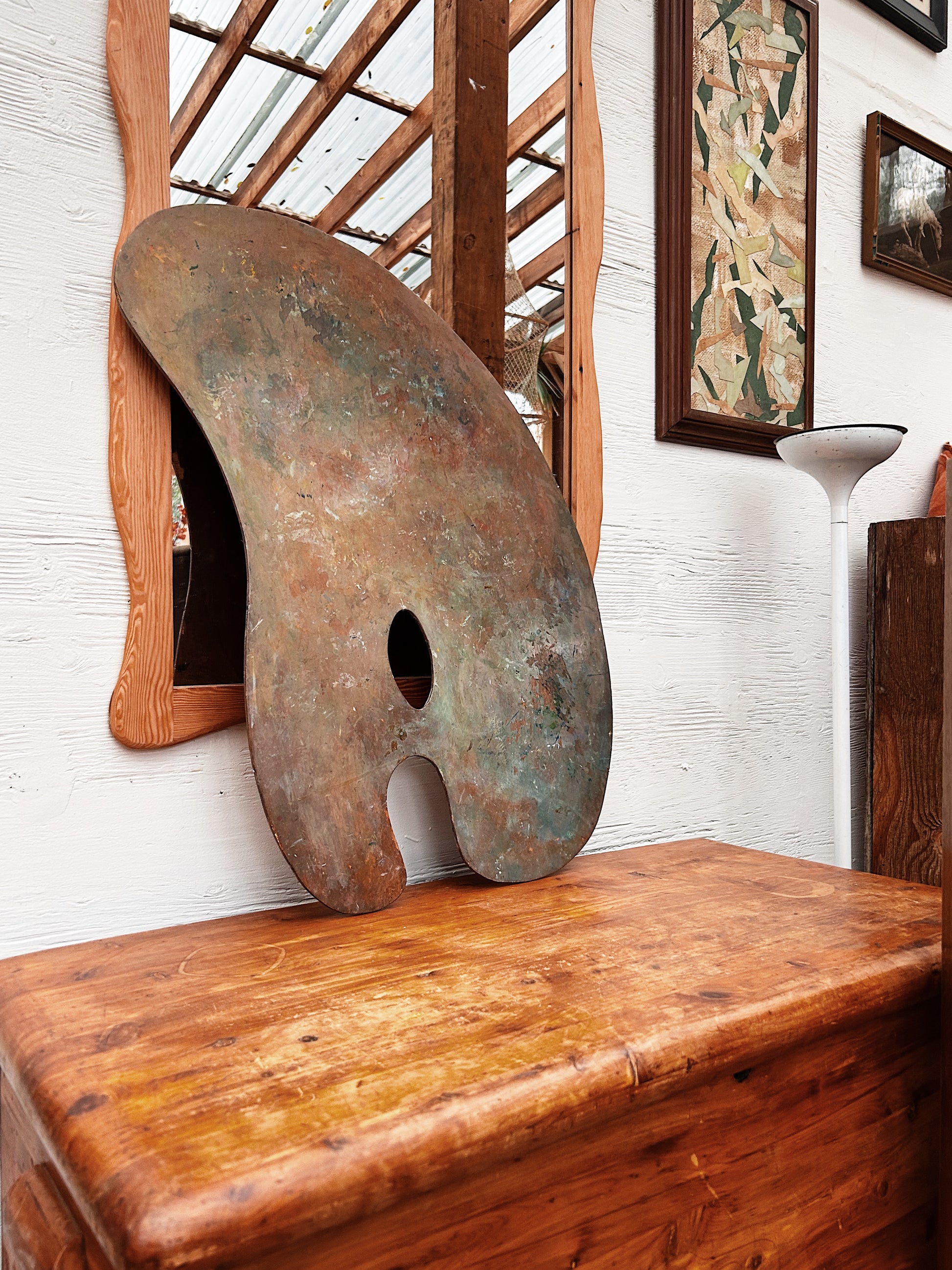 Vintage wood paint pallette. Soft muted colors. One of our favorite types of art. This one is big and able to be used as a surface as well as hung