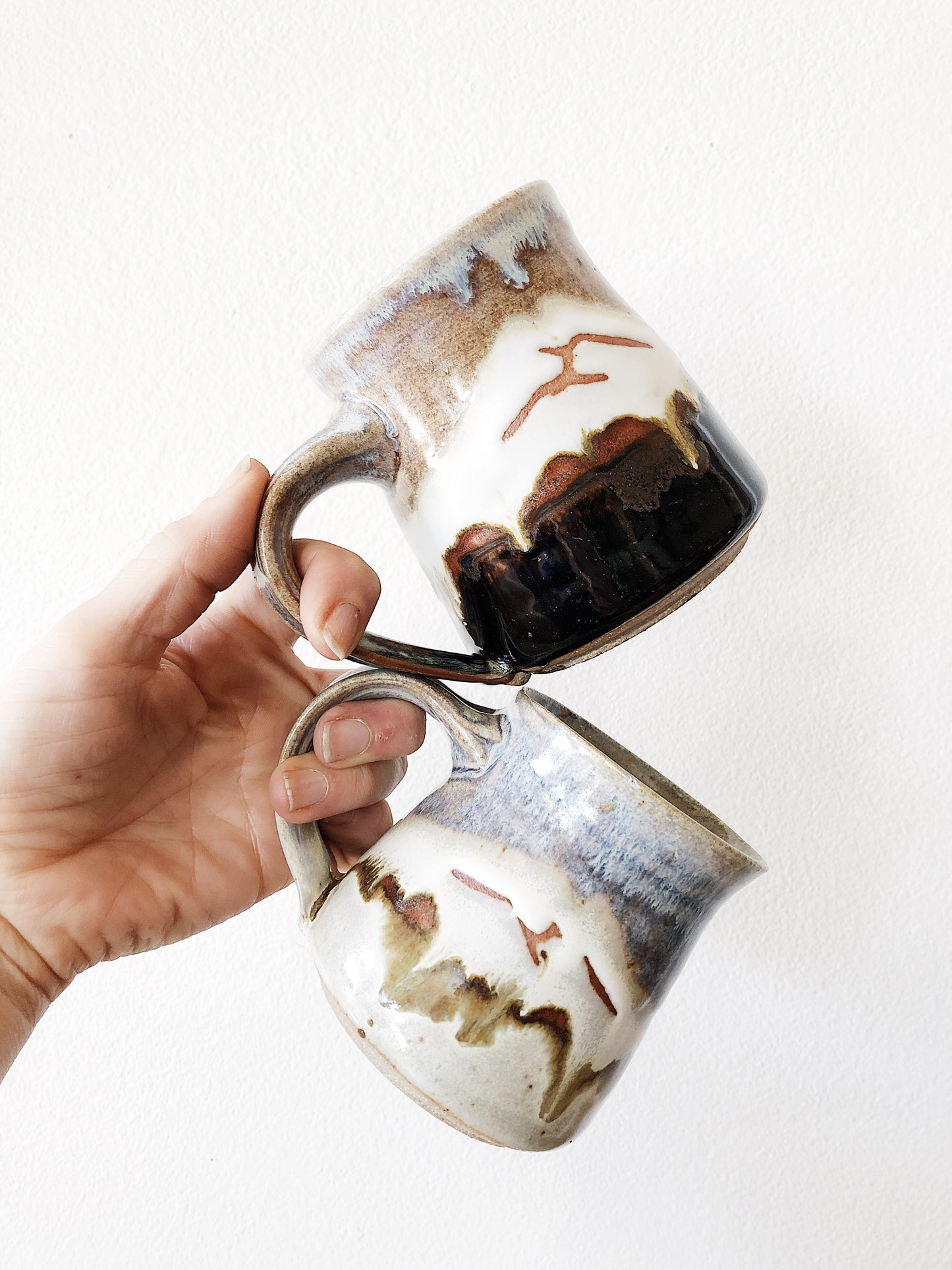 Beautifully made abstract mountains grace these vintage ceramic mugs. Comes as a pair
