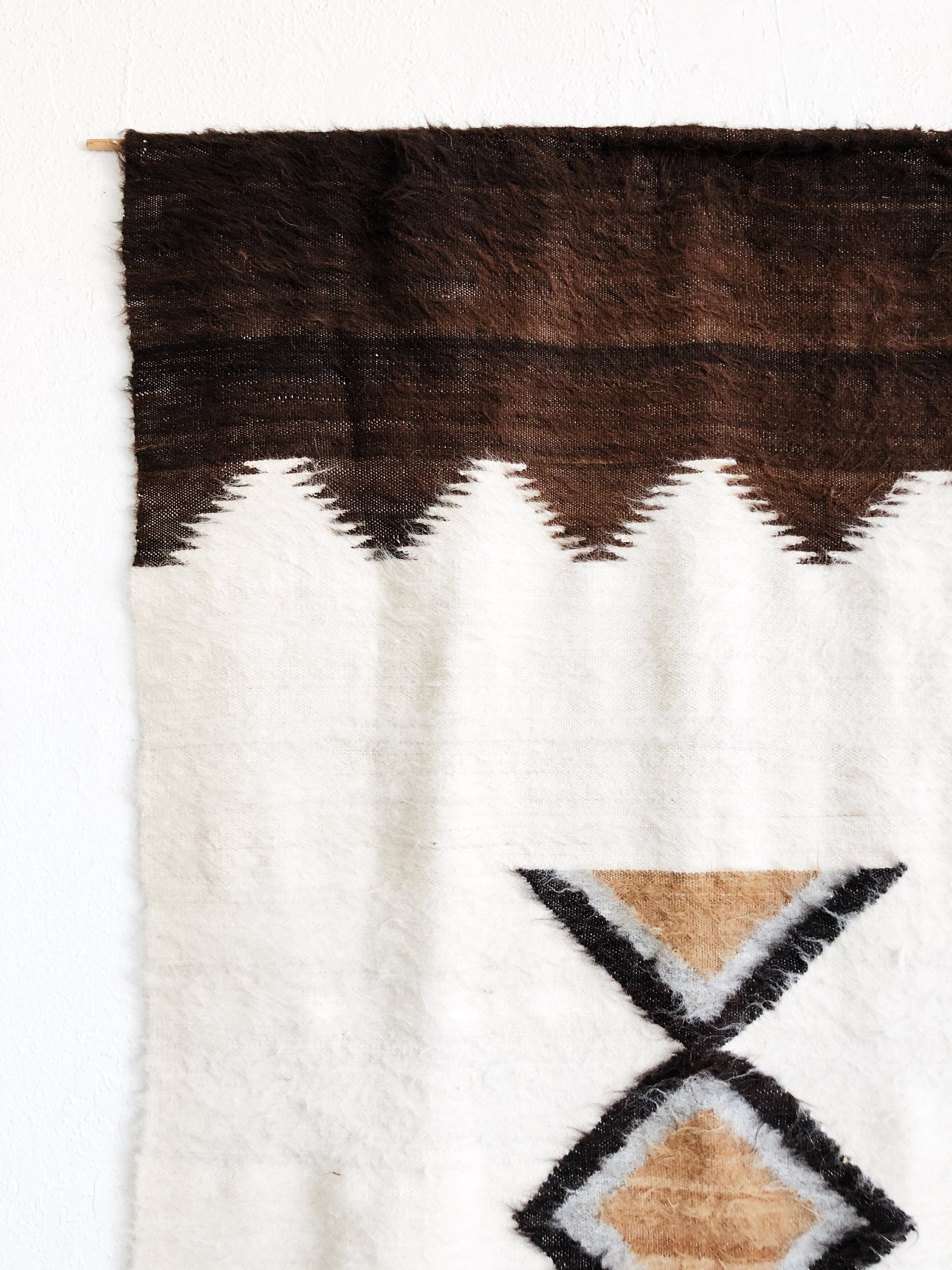 Super soft alpaca woven in a beautiful pattern. Use on the floor in low traffic areas where you need a little soft underfoot. Also can hang on the wall drape over a bed etc.