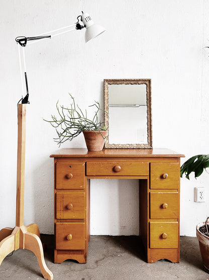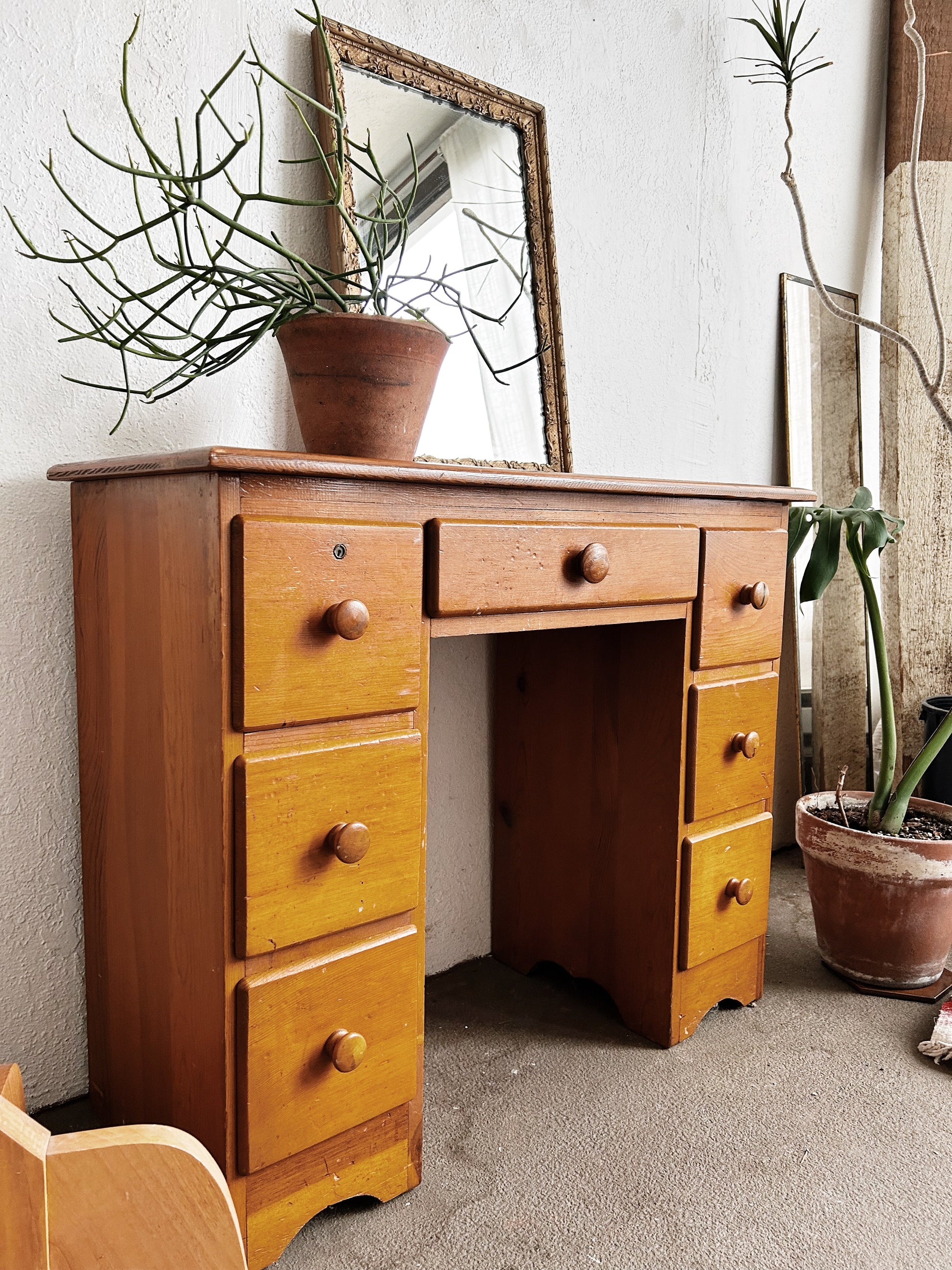 This is such a sweet little desk with seven drawers. Solid maple from the 40’s. Perfect desk for a child or for an entryway. In nice shape overall with minor cosmetic marks typical for the age.