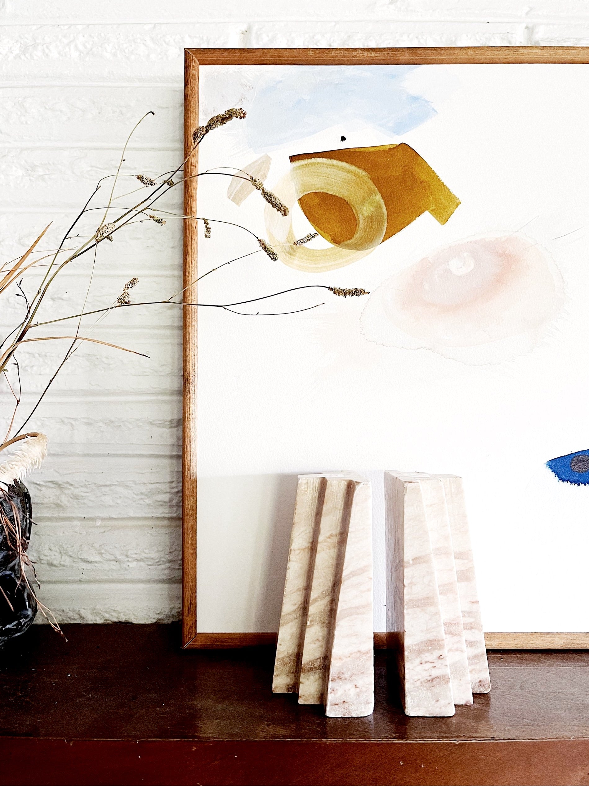 Graduated forms in pink marble. Gorgeous look for books or records. For the pair