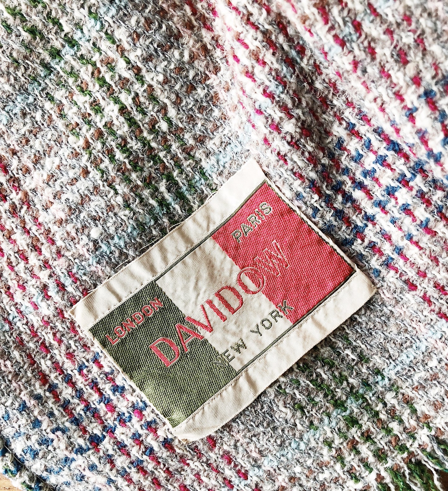 Pretty earthy plaid in rose blue and brown tones. Extra long to wrap round you by the fire. Tiny fringe and original label.