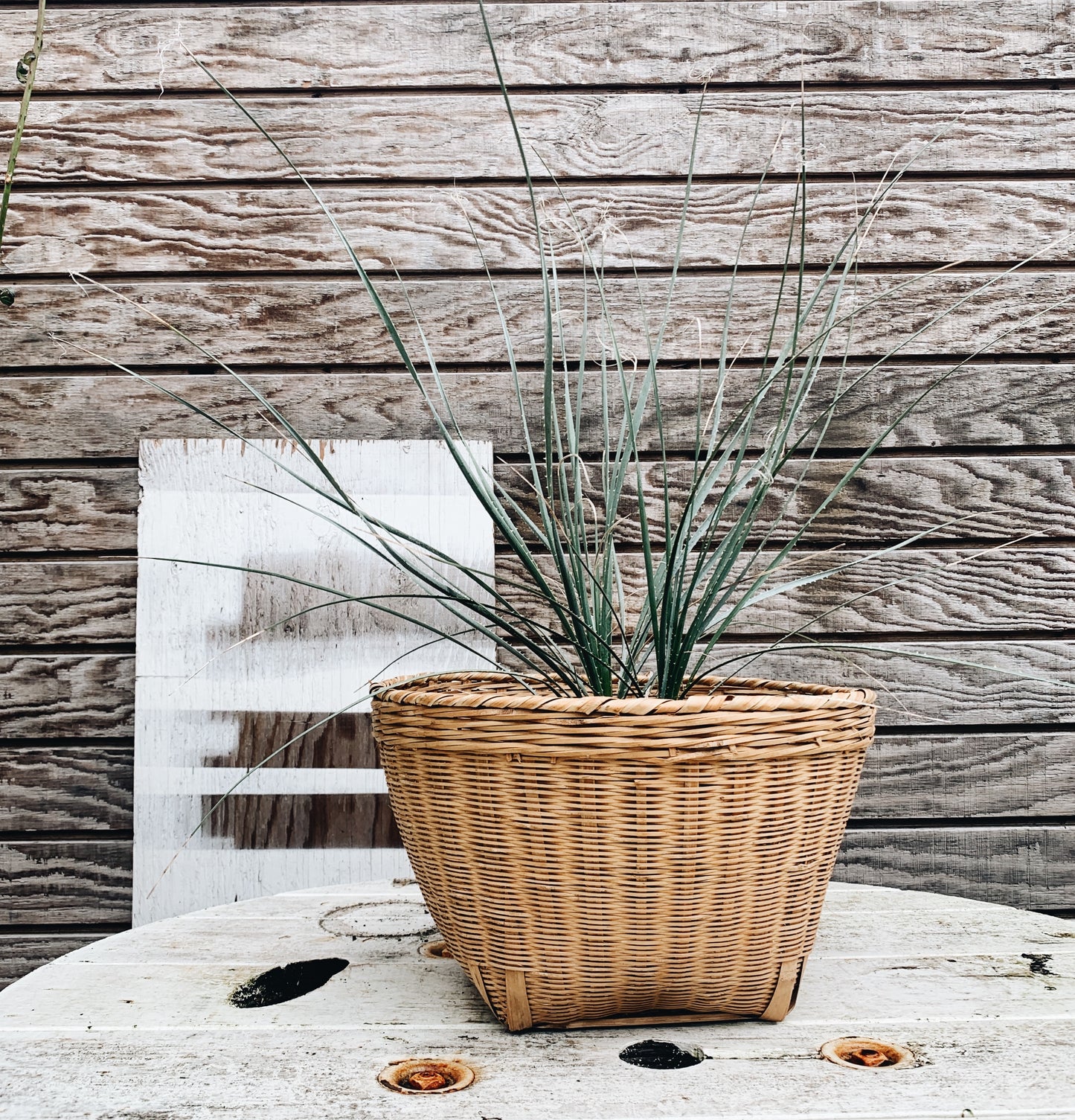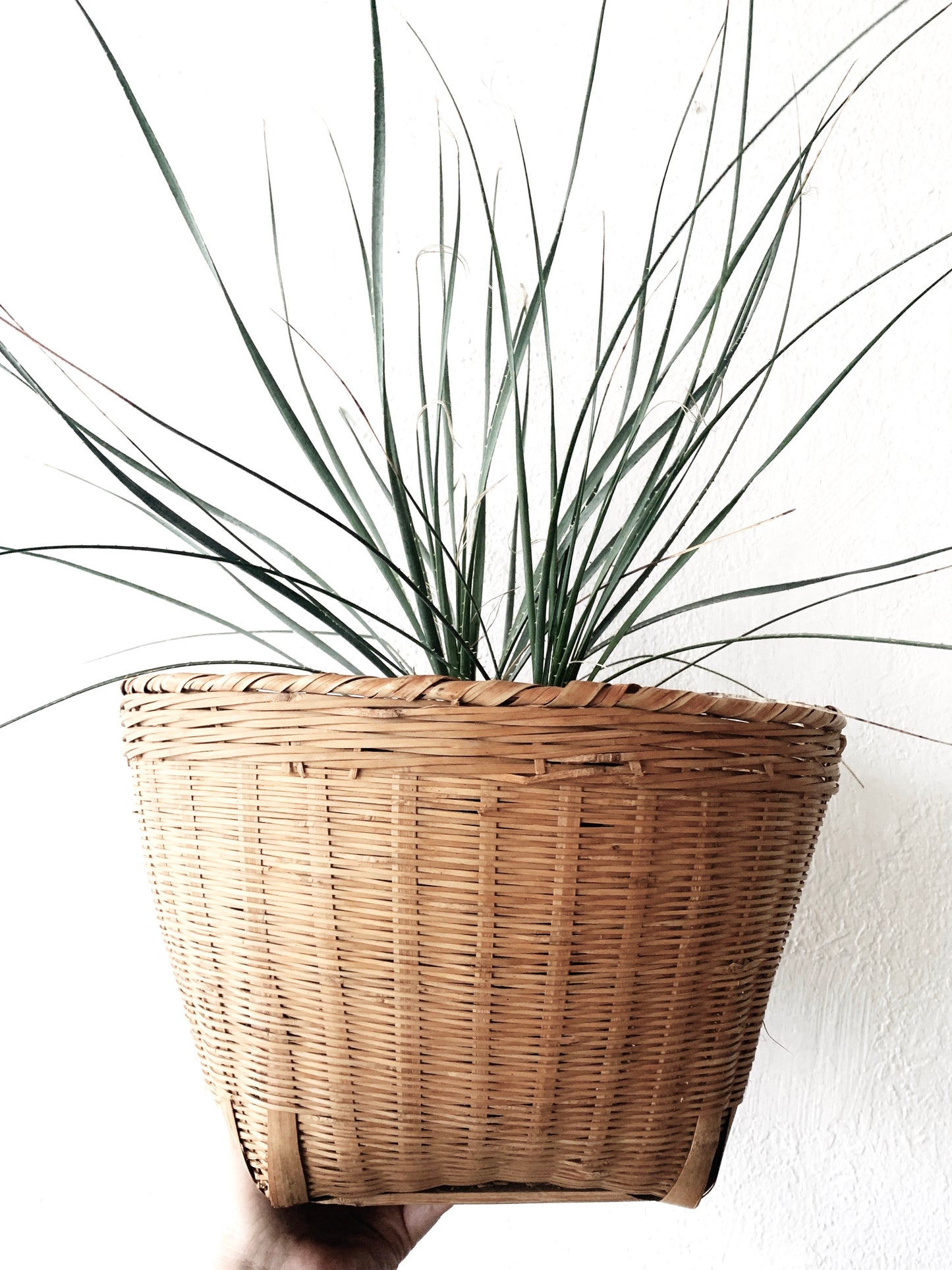 A pretty shape to this vintage woven basket. Great for a plant or for holding any number of things. Very useful size!