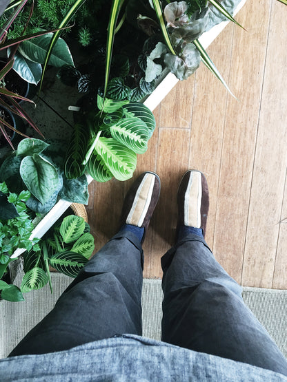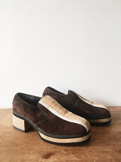 Love these vintage suede Hush Puppies. Great 60’s vibe. Chocolate brown with beige and cream stripe.